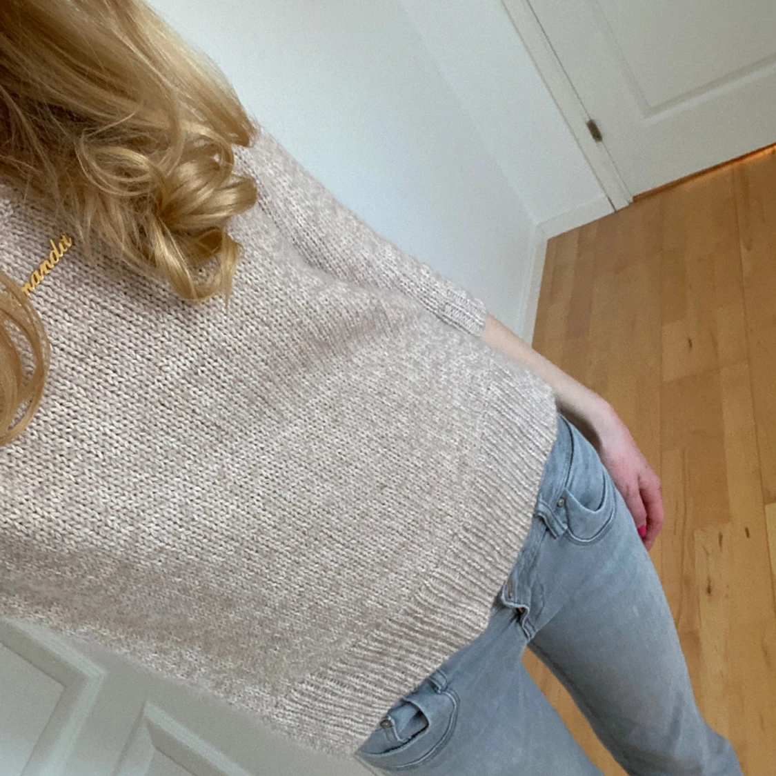 Jättefin beige stickad tröja som är trekvartsärmad. Storlek S 220kr + frakt