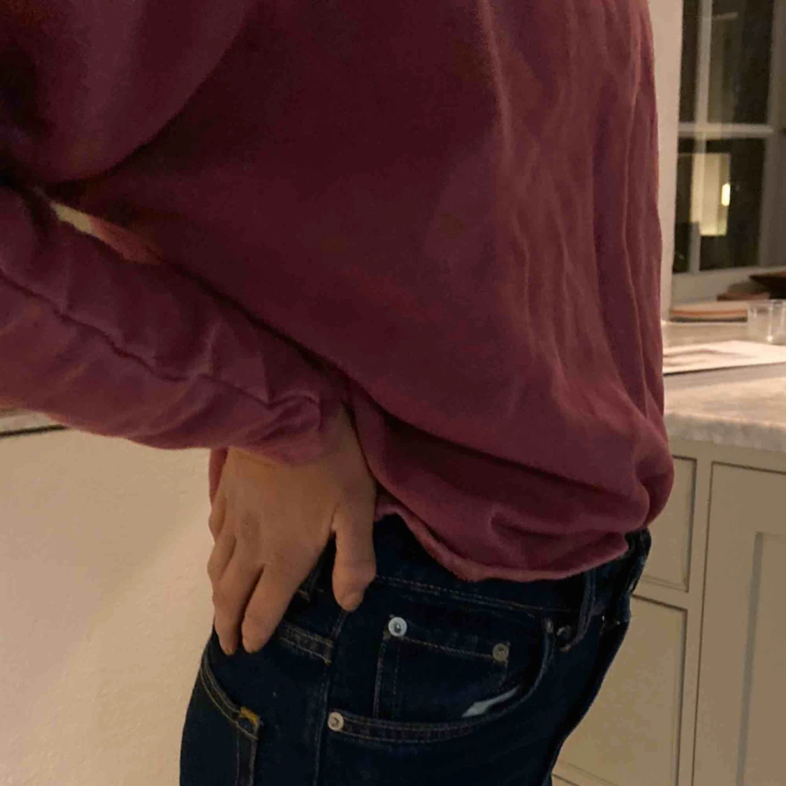 Vinröd tjocktröja som är får Zara. Även fast den är ganska liten till storleken fungerar den bra!