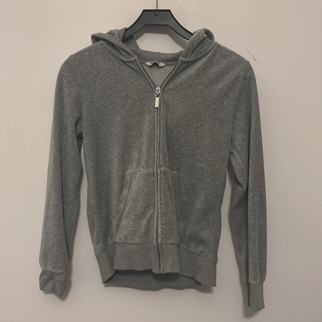 En basic grå hoodie med dragkedja framtill och stor huva. Tröjan har långa ärmar, ribbade muddar och en praktisk ficka på magen. Perfekt för chill dagar eller när du vill ha något bekvämt och enkelt.