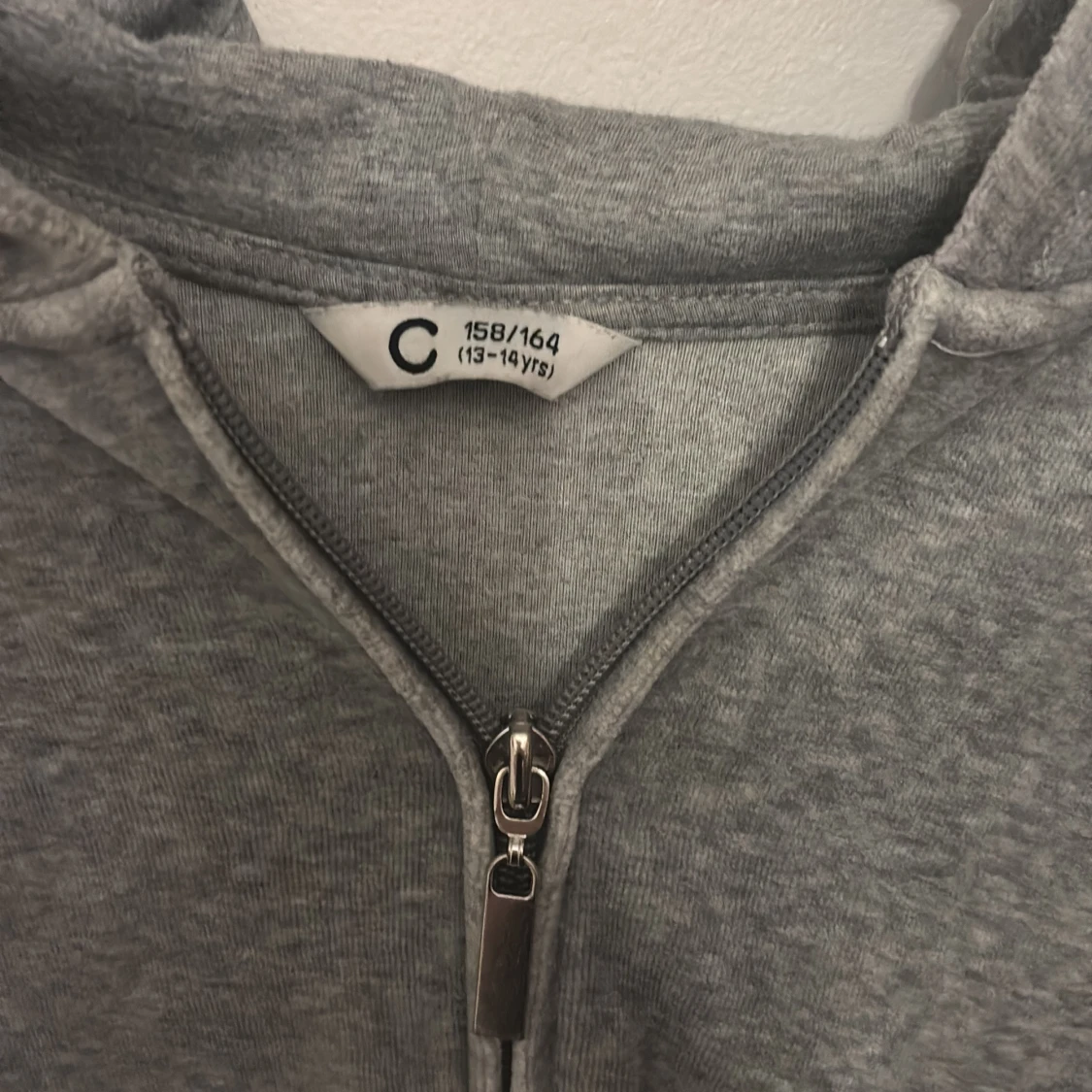 Grå hoodie med dragkedja och huva