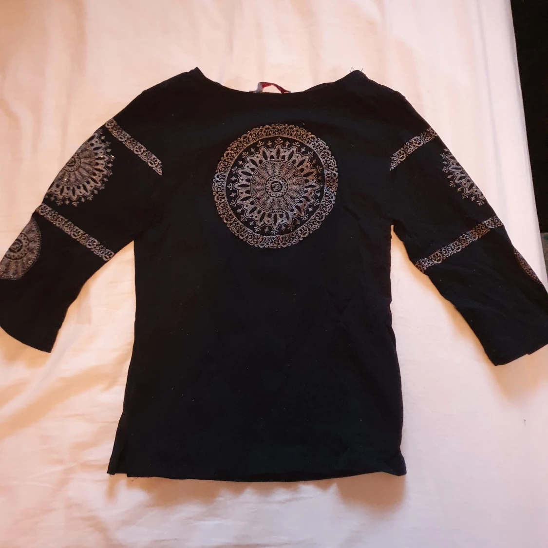 Svart tröja med Mandala mönster i st xs/s sitter tajt och har mycket stretch i sig väldigt bekväm. Jätte fin till blåa jeans!! Säljer för rensar ut garderoben, den är iI mycket gott skick!!