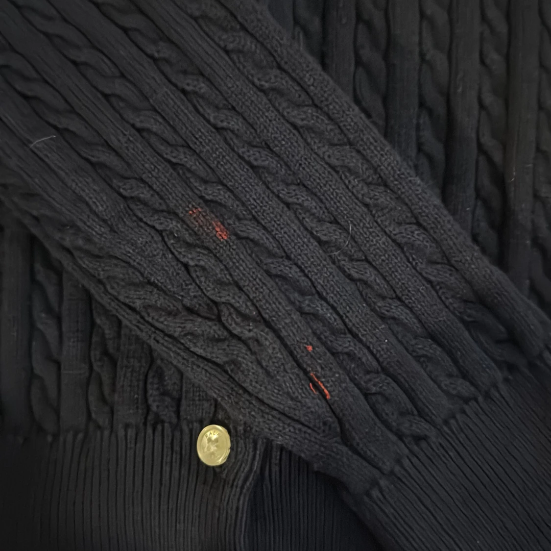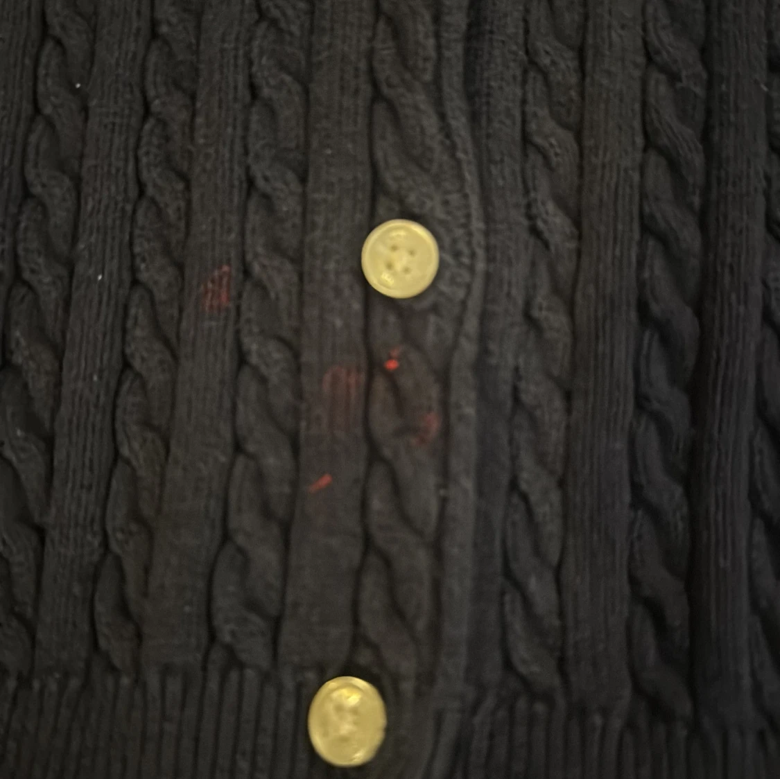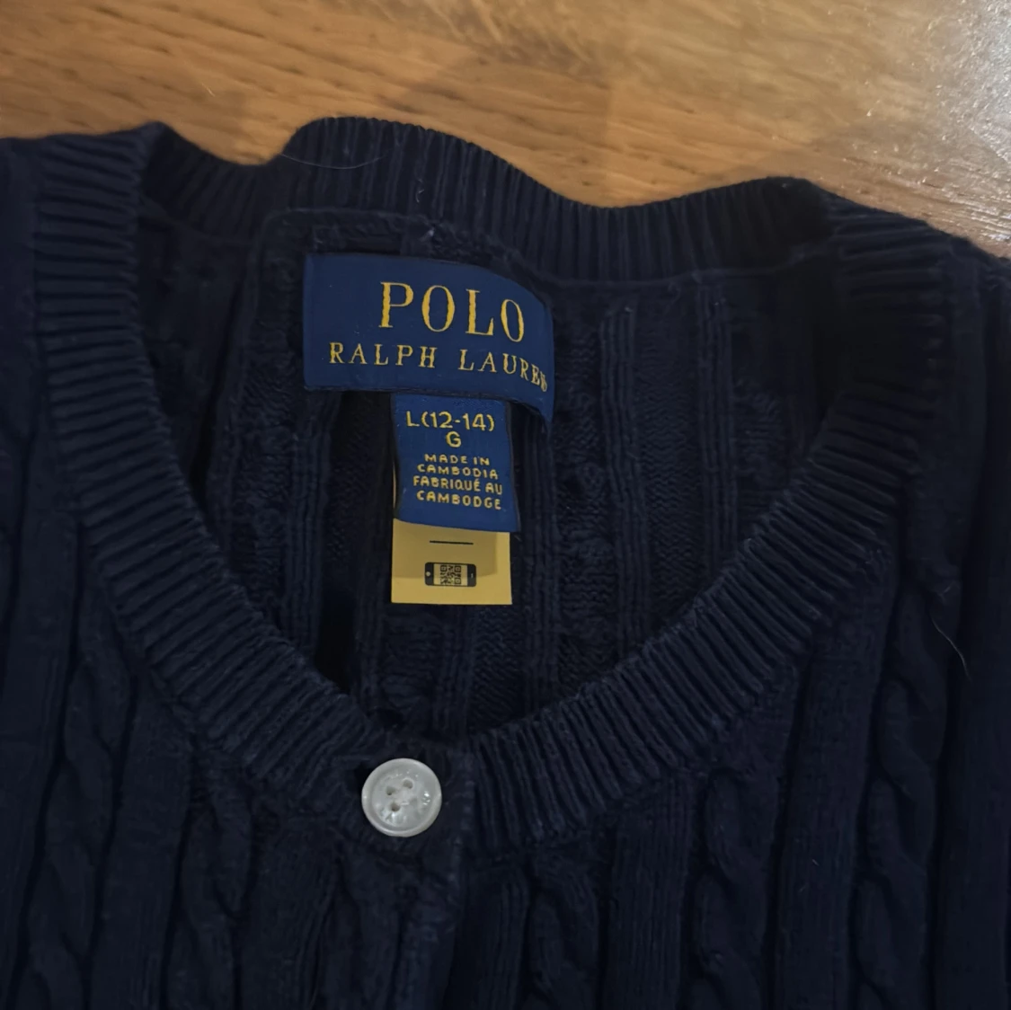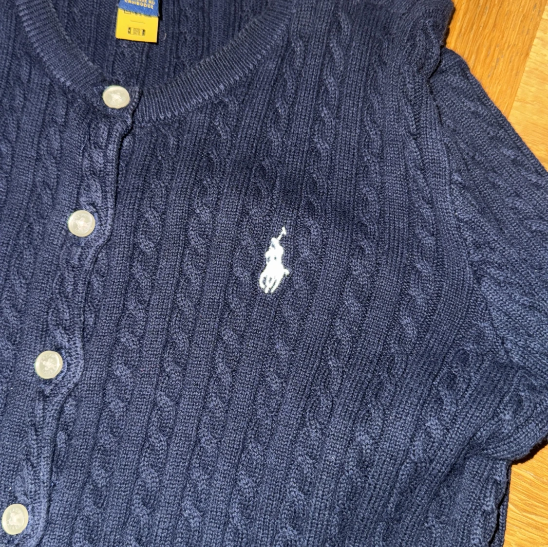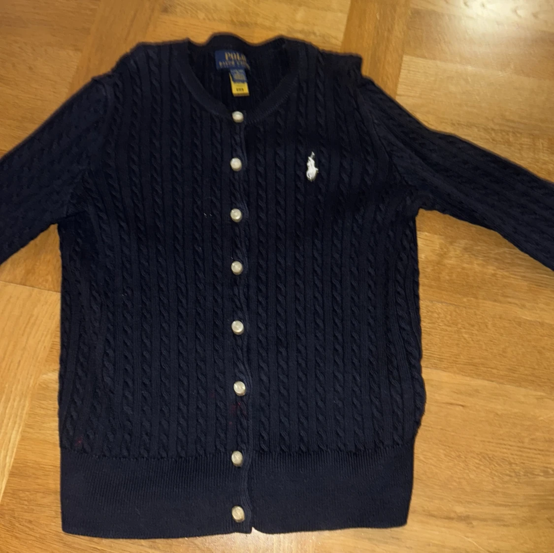 En kofta från Ralph Lauren, köpt i USA. Säljer då den inte passet längre. Som man kan se på bilden så har den lite röd färg på armen och vid knapparna men det är knappt så att man ser. Köptes för runt 1000kr men säljer för 400kr pga. skicket. Det är en barn storlek (L/12-14)