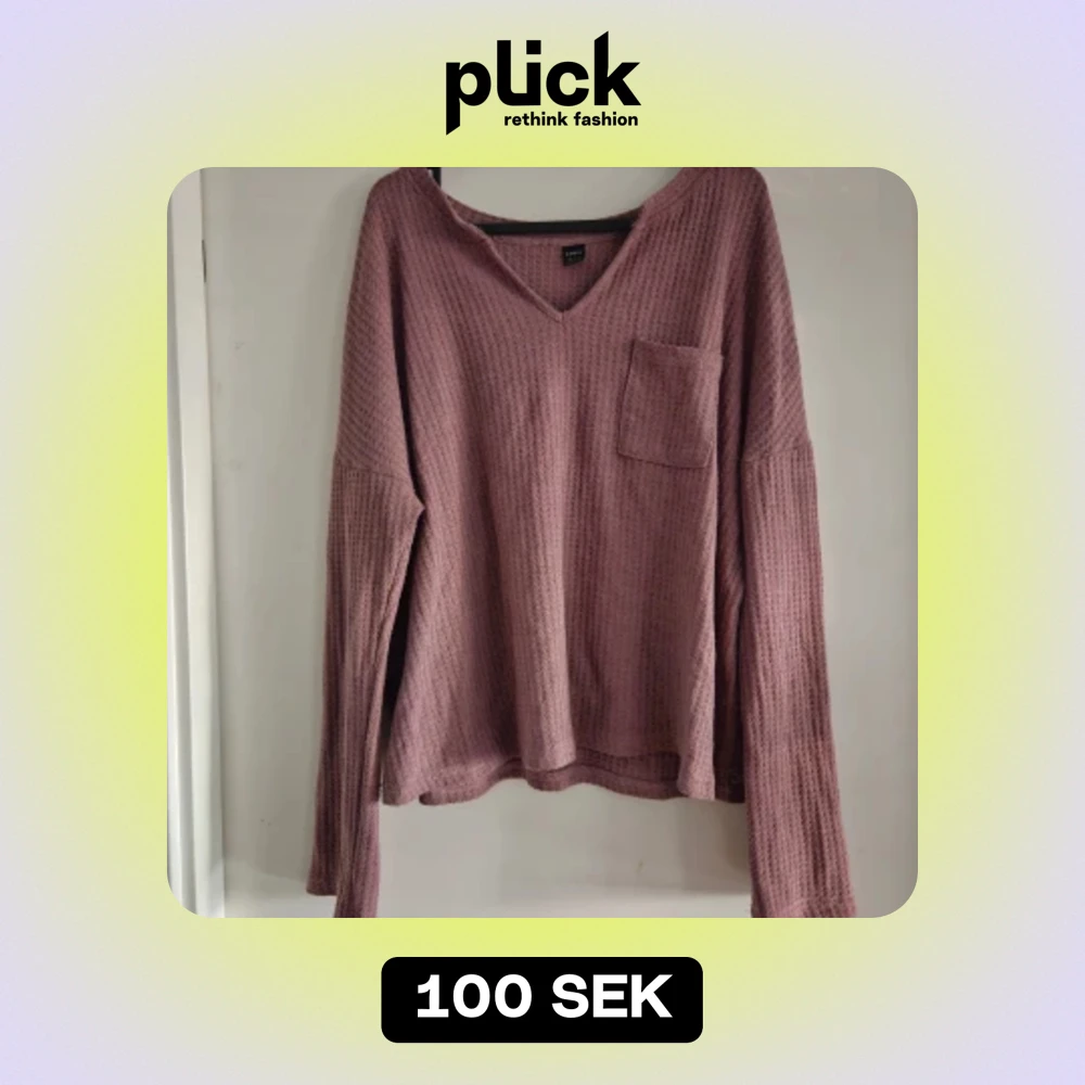 Sotig rosa tröja säljes. Stickad med en ficka framtill. Ganska stor i storleken