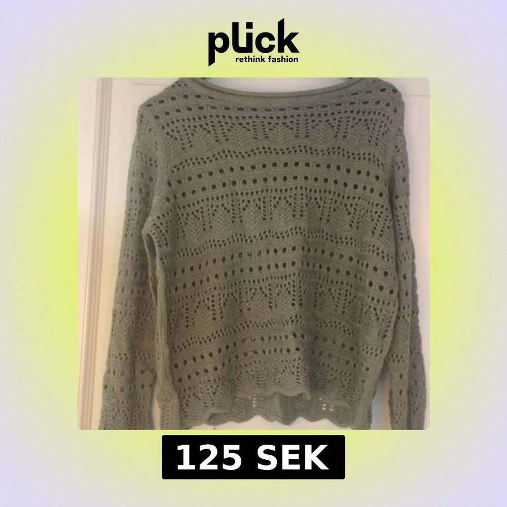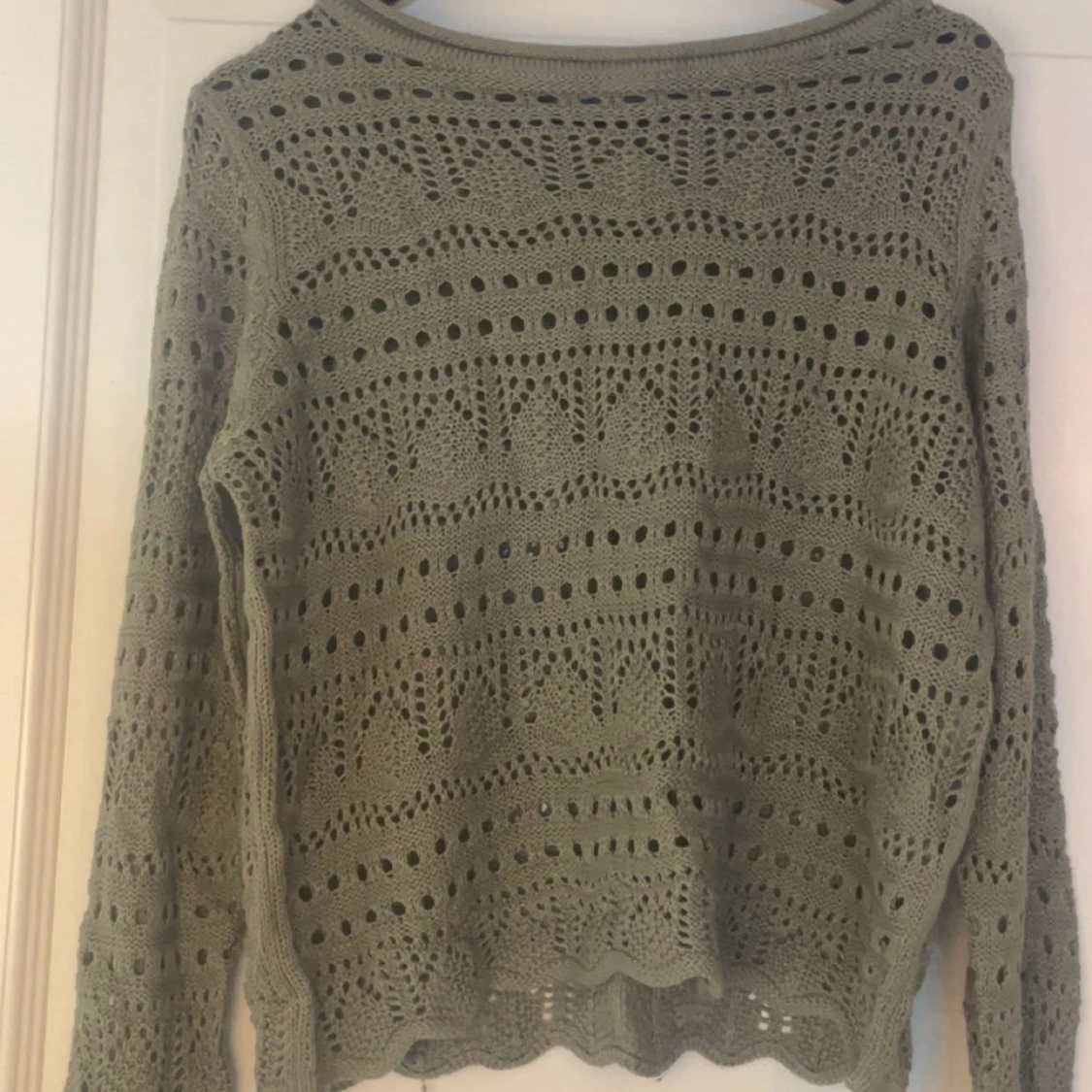 Snygg olivgrön stickad tröja med hålmönster och lång ärm. Tröjan kommer från only och är super fin