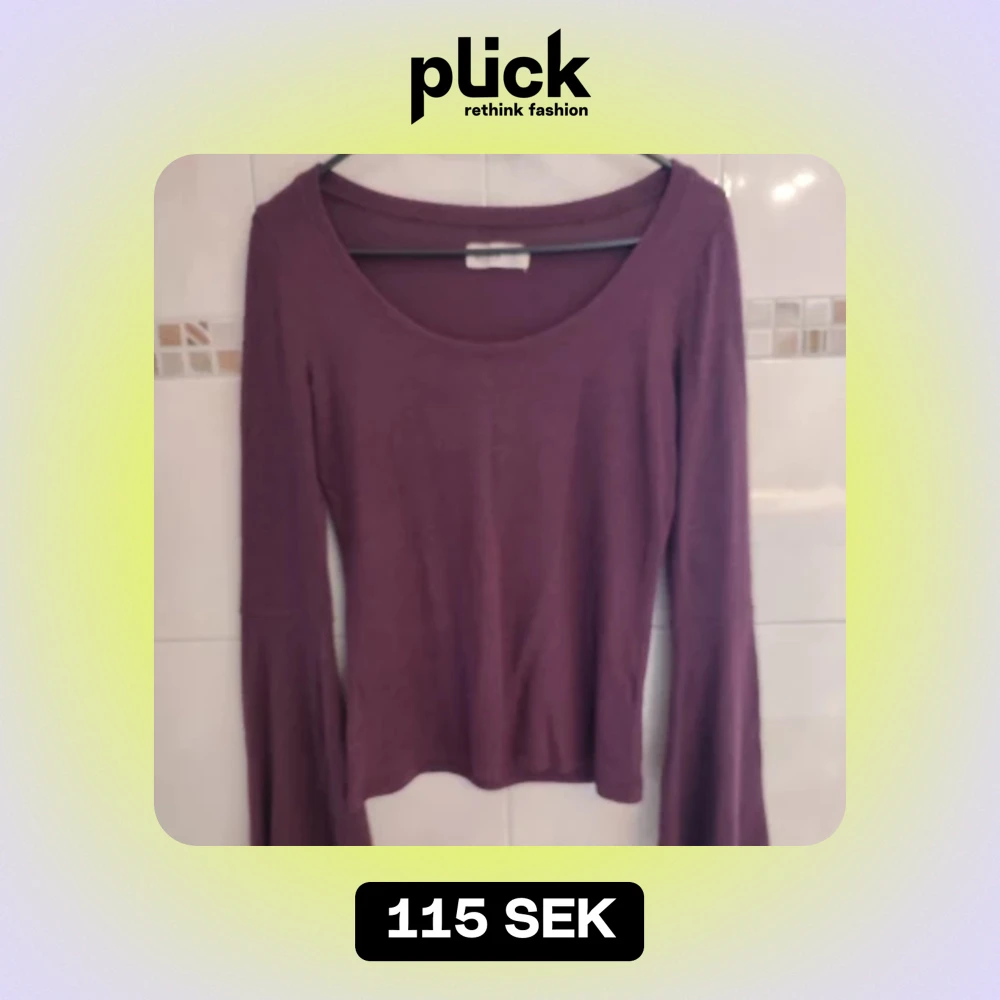 Tröja med bell bottom på ärmarna, färg: vinröd/lila jättefin färg. I nyskick haft på mig den ca. 4-5 ggr. Material: 75% viskos, 21% polyester och 4% elestan
