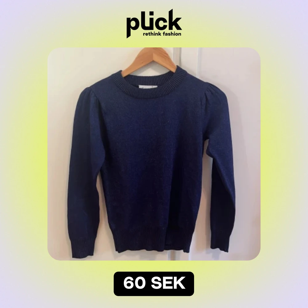 En glittrig mörk blå träja som passar till nyår och julen. Har använt för tan gånger men den kommer inte till användning nån mer.