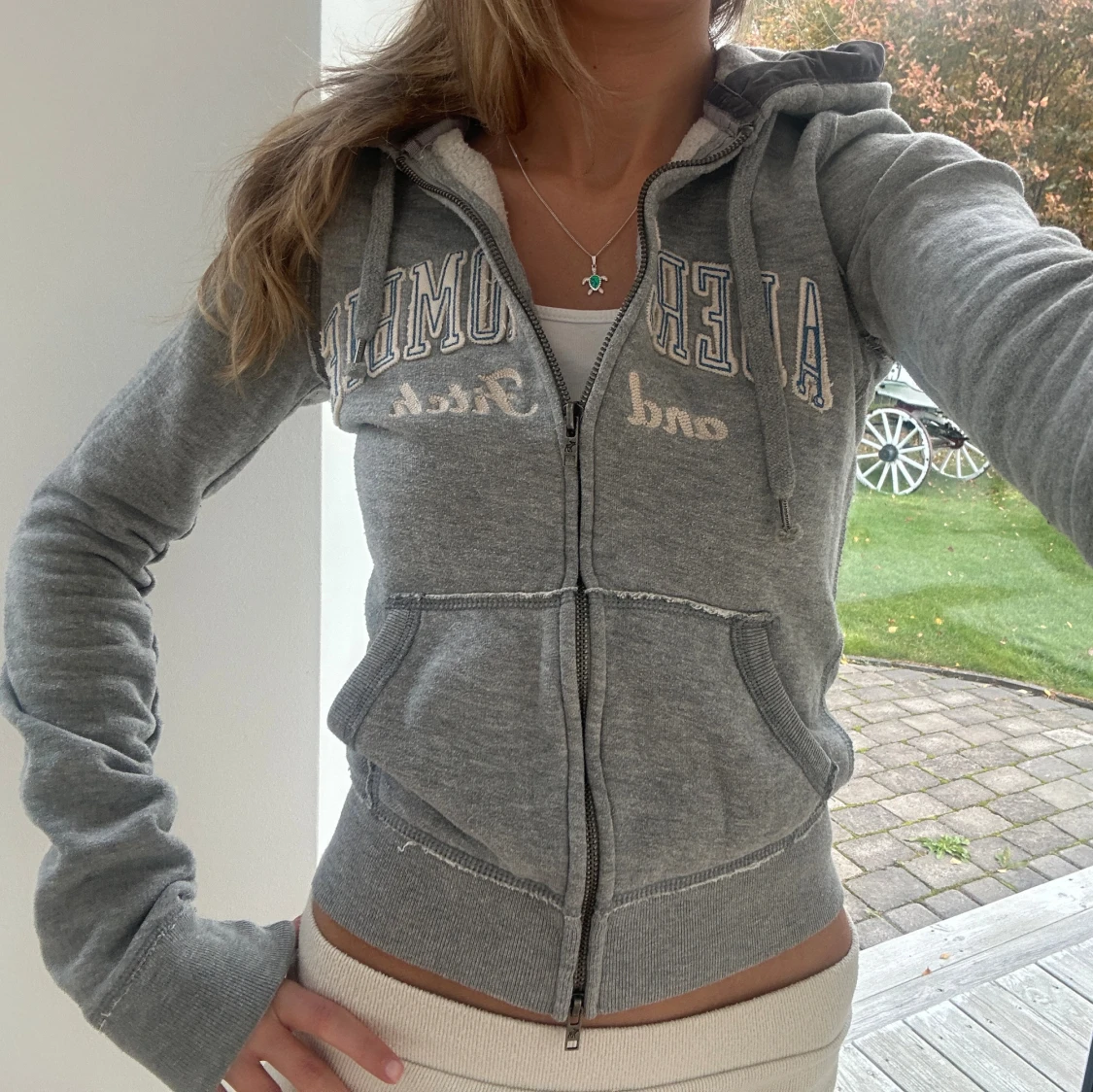 En zip från Abercrombie & fitch i storlek S. Kan upplevas mindre i storlek pga petite ”figursydd” fit. Tröjan bedöms vara vintage men har varit väl omhändertagen. Jag skickar ditt köp inom 24h. Se liknande zip i min profil!
