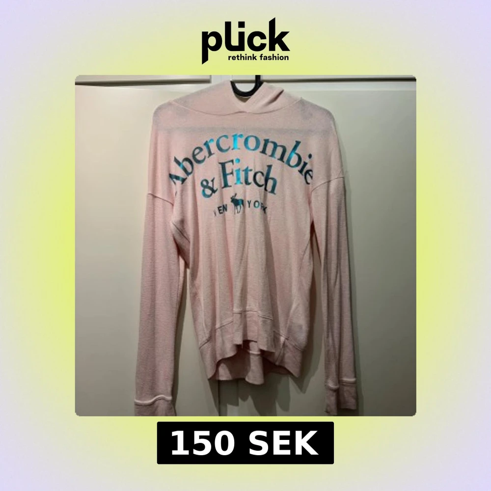 Supermjuk ljusrosa hoodie från Abercrombie & Fitch med stort blått tryck framtill. Tröjan har långa ärmar, huva och avslappnad passform. Perfekt för chill dagar och enkel att matcha med jeans eller leggings. STOR I STORLEKEN PASSAR xs och s Skriv för mer bilder och frågor så svarar jag så fort jag kan pris går altid att diskuteras💕💕