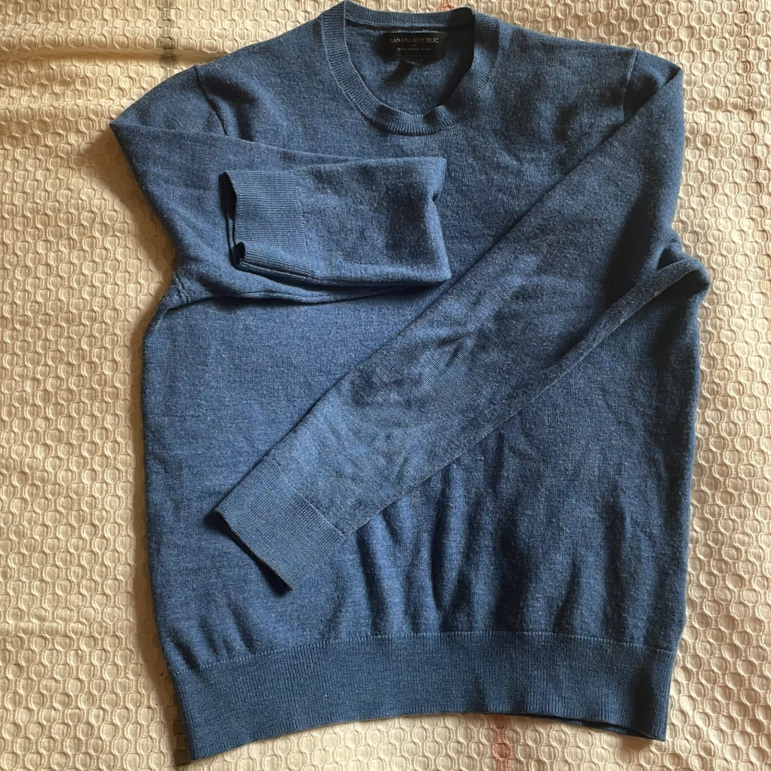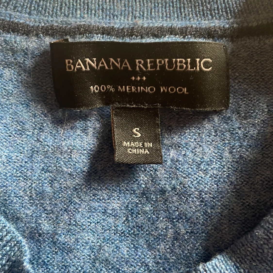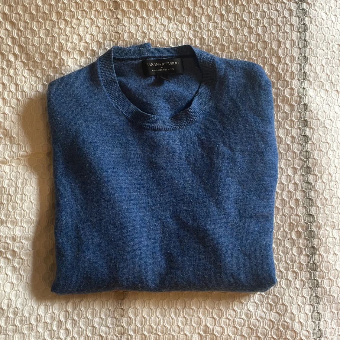 Ljusblå tröja av 100% merinoull av märket Banana Republic. Storleken är s men sitter som xs. Själv är jag 178, sitter väldigt litet och tajt på mig. Tröjan är i bra skick, inga synliga deffekter. Fraktar postnord eller möts på södermalm(stockholm).