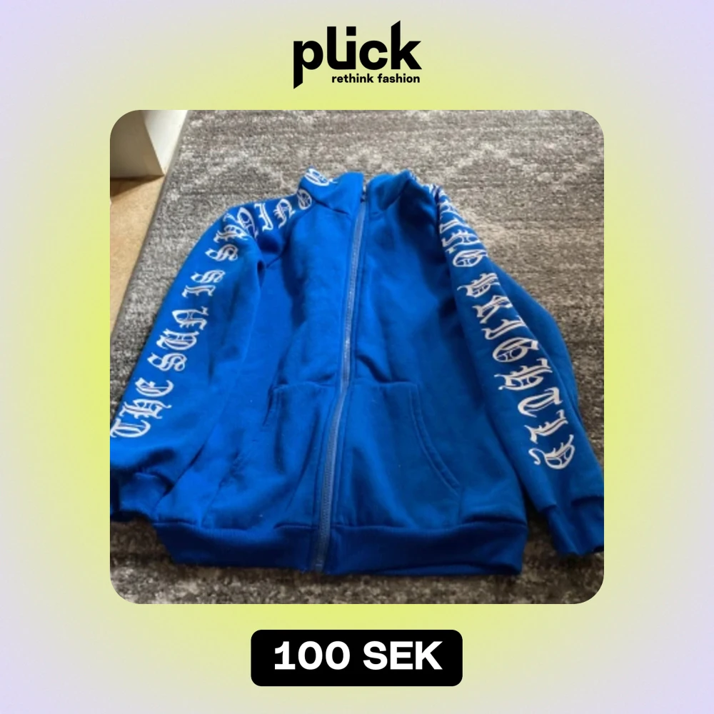 En blå zip hoodie andvänd 4 gnr ungefär och är i bra Skick