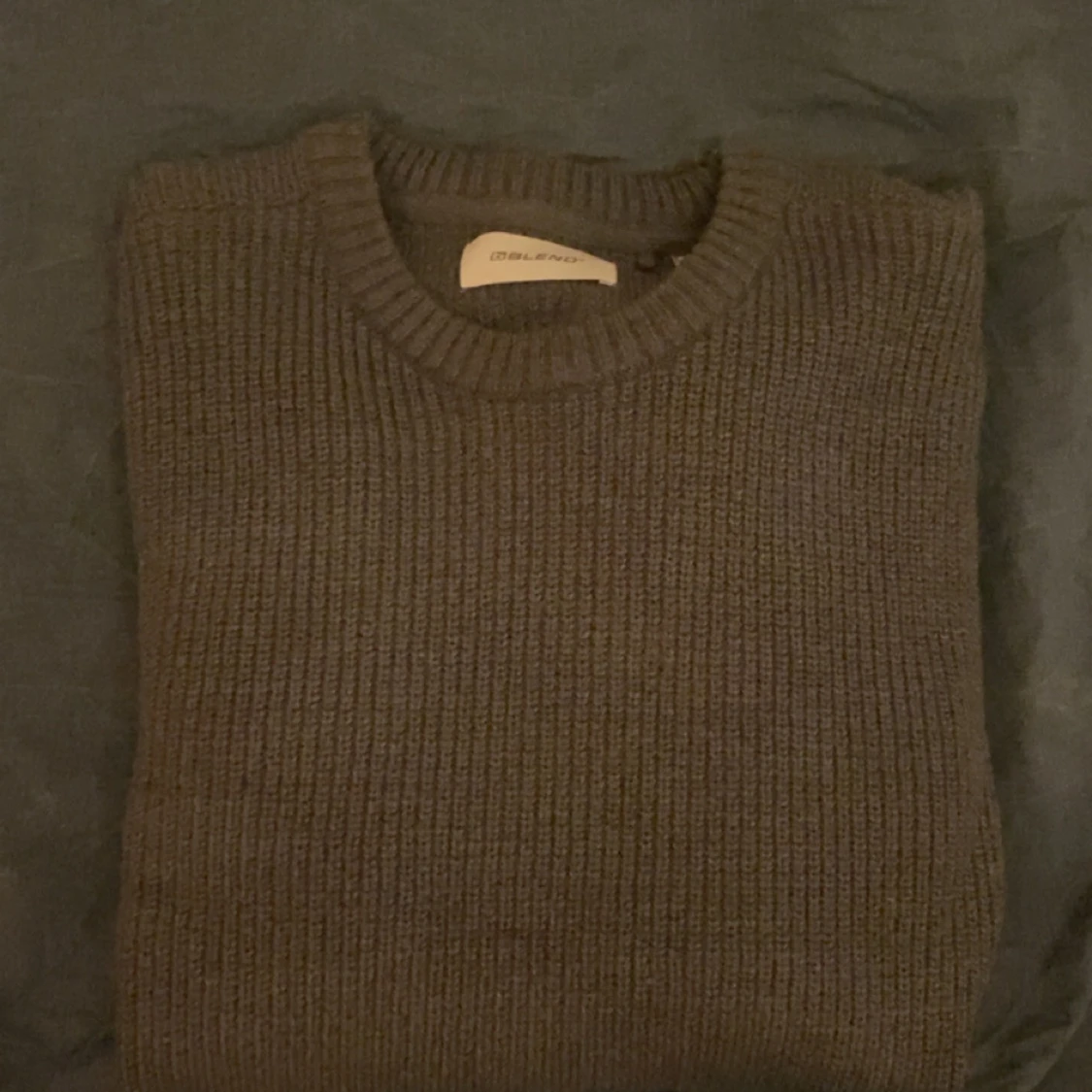 Säljer en stilren grå stickad tröja från Blend i storlek M. Tröjan har rund halsringning, ribbade muddar och är långärmad. Perfekt för lite kallare väder. 😀