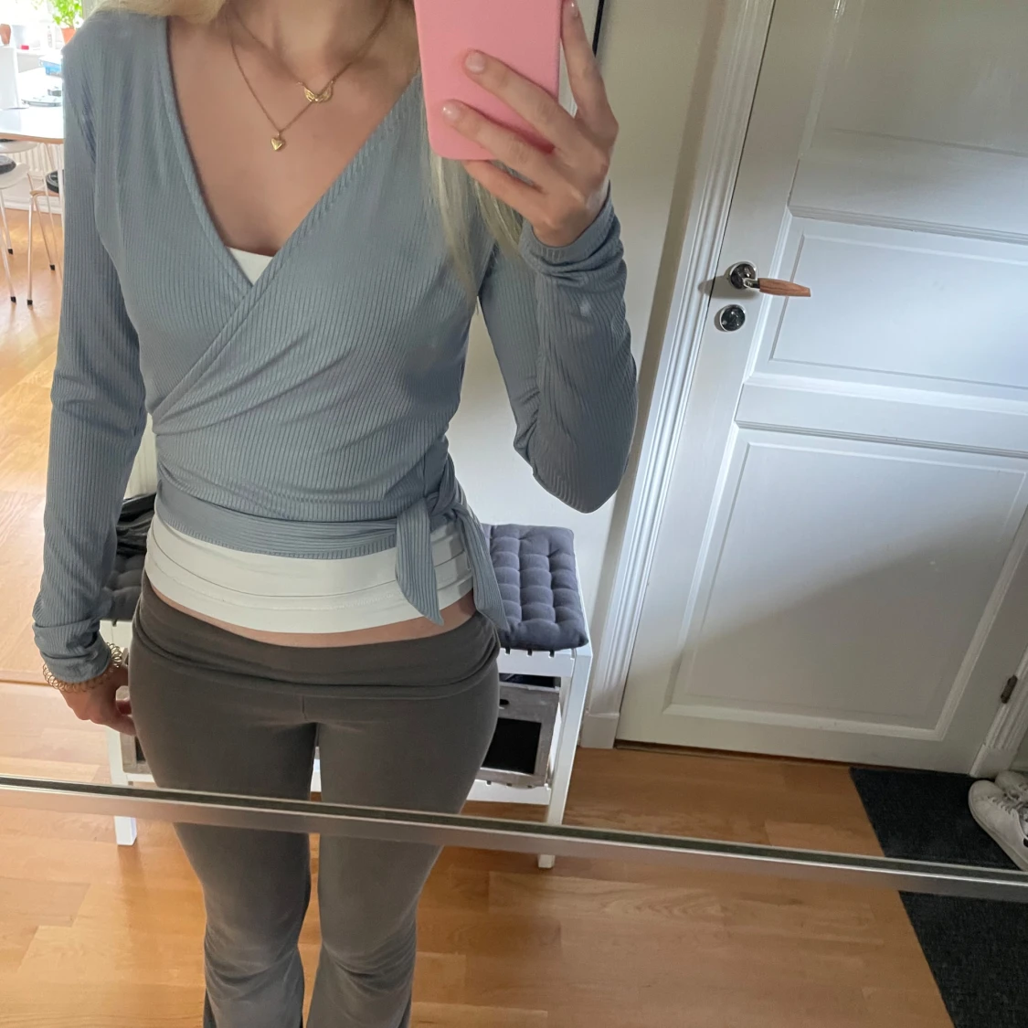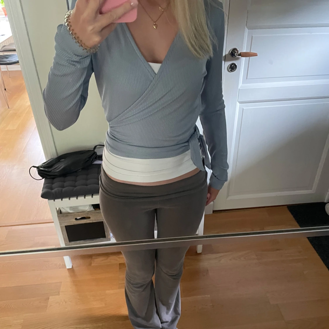 Ljusblå omlottopp med knyt