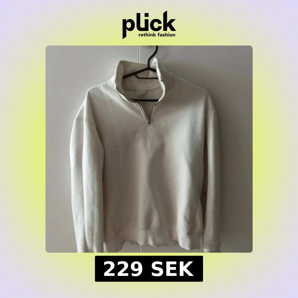 Säljer en stilren vit sweatshirt från Zara med half zip och hög krage. Tröjan har långärmad passform och är gjord i mjuk bomull, perfekt för lager-på-lager. Enkel och clean look som funkar till allt. Snygg att matcha med jeans eller mjukisbyxor.