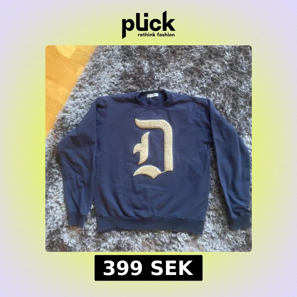 Snygg mörkblå sweatshirt från Dondup med ett stort, beige broderat D på bröstet. Mycket bra skick. Storlek S. Hör av er vid intresse!!