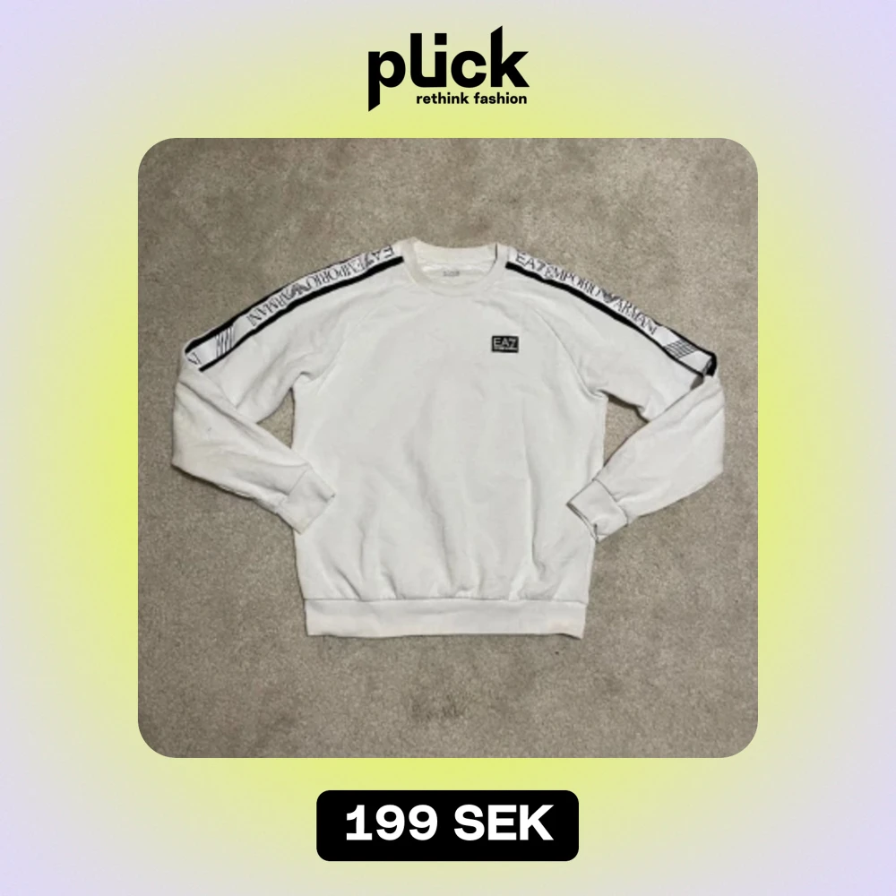 EA7 Emporio Armani vit sweatshirt, storlek Small. Snygg märkessweater. Ord. pris 1249 kr – ett exklusivt erbjudande på denna stilfulla och bekväma sweatshirt!