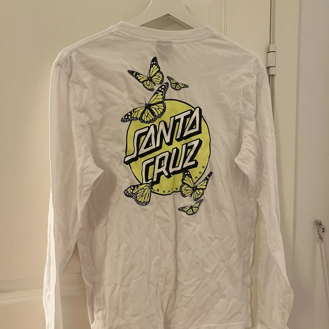 Jättefin Santa Cruz tröja med neongult tryck och fjärilar. Använd 1 gång så i nyskick. Säljer pga av att det inte är min stil. 150kr eller bud! 🦋💛 Storlek S, men passar också XS/M beroende på hur man vill att den ska sitta.