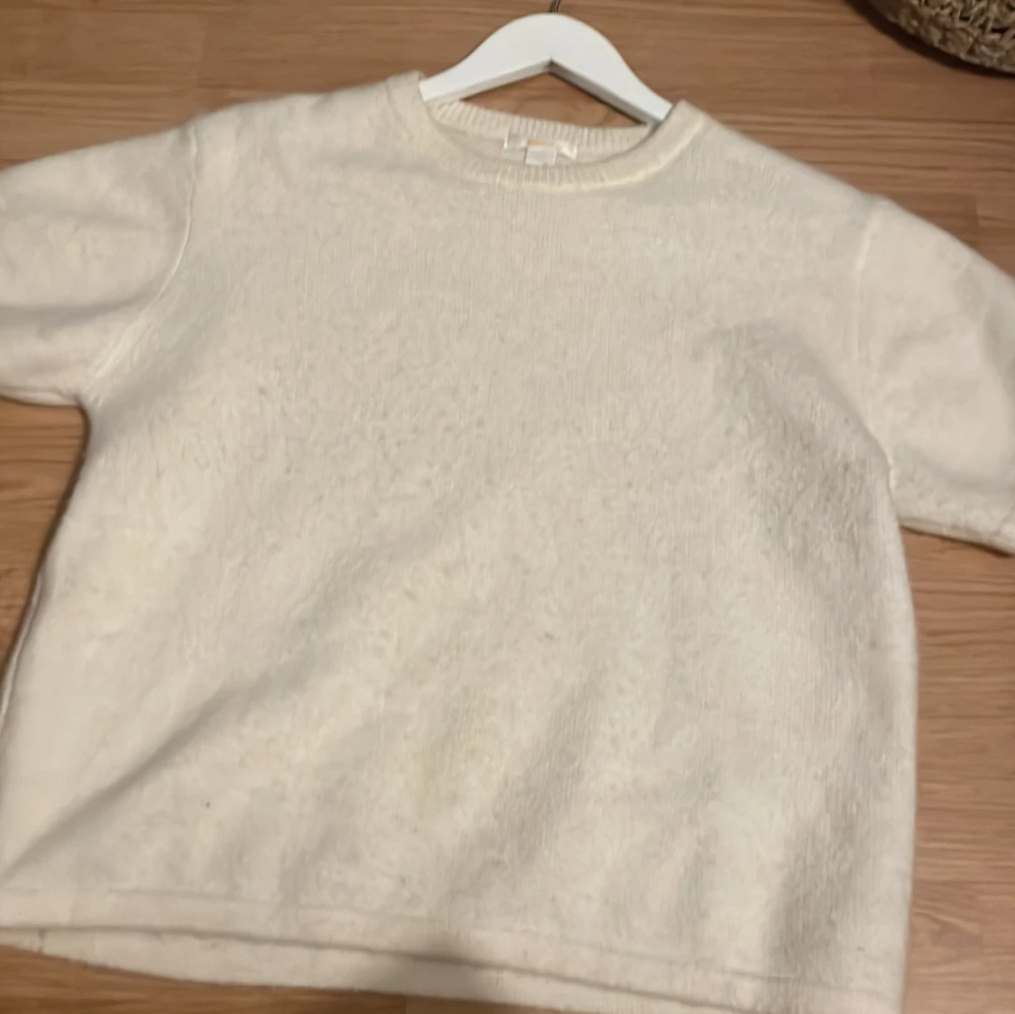 Vit stickad T-shirt från Gina tricot. Storlek 170, passar som S skulle jag säga💗😊.
