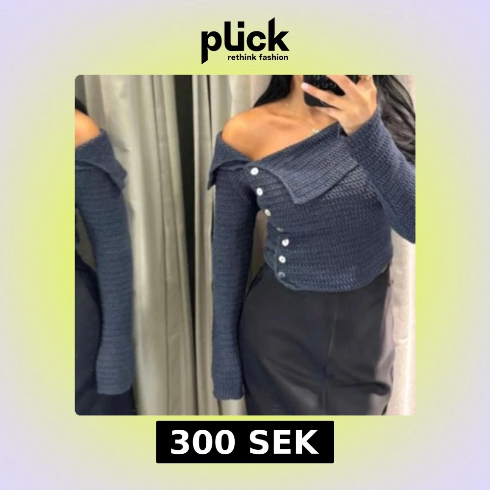 Säljer min mörkblå stickad tröja från Zara. Perfekt för dig som vill ha något snyggt och annorlunda i garderoben. Endast använd fåtal gånger