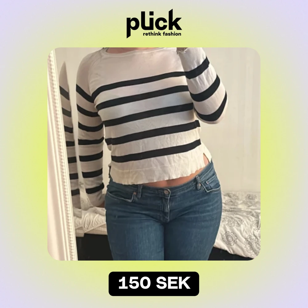 Säljer nu min randiga tröja ifrån Zara. Endast använd ett fåtal gånger och är tunn och perfekt till sommaren💗☺️ Nypris: 280 Kr