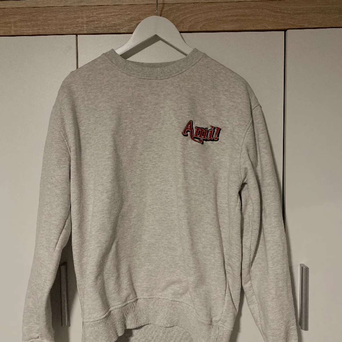 Säljer min Ami tröja då jag inte använder den längre. Mycket bra skick och knappt använd. Storlek M men ganska liten till storleken. (Det är dålig bild för har inte så bra ljus hemma)
