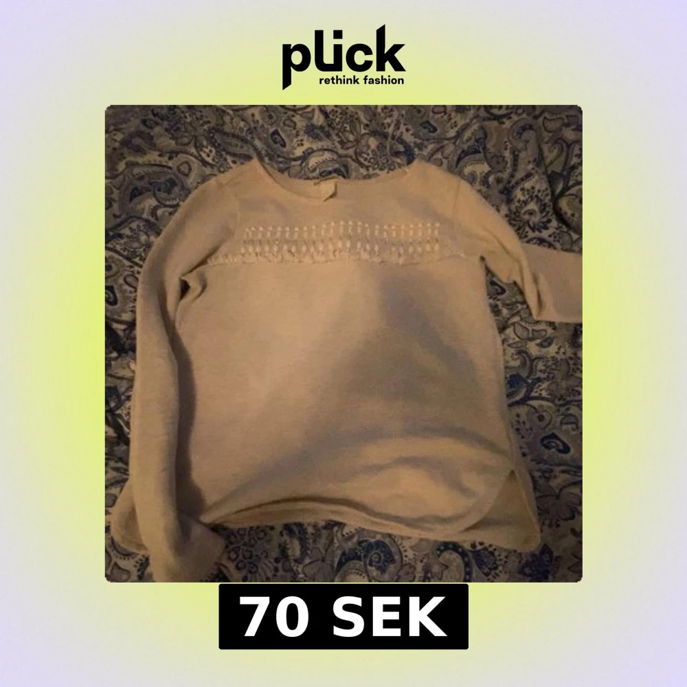 Superfin beige tröja från H&M Conscious i storlek XS. Tröjan har långa ärmar och är dekorerad med pärlor och små stenar över bröstet samt fransig kant. Mjuk och skön, perfekt till höst och vinter. Rund halsringning och lätt rundad nederkant. Saknar en pärla men de är inget man tänker på 💕