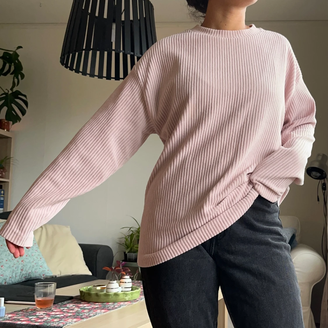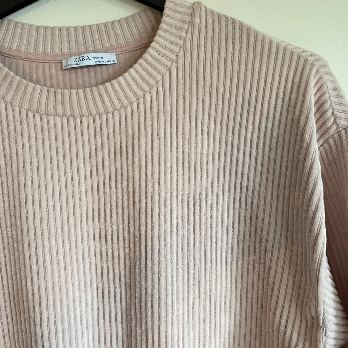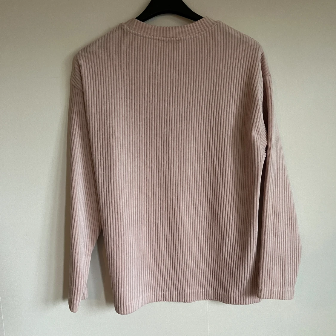 Ribbad rosa tröja i bomull och polyester. Använd flera gånger och i bra skick. Bild visar hur stor den är på mig som har xs. Erbjuder mängdrabatt🌻