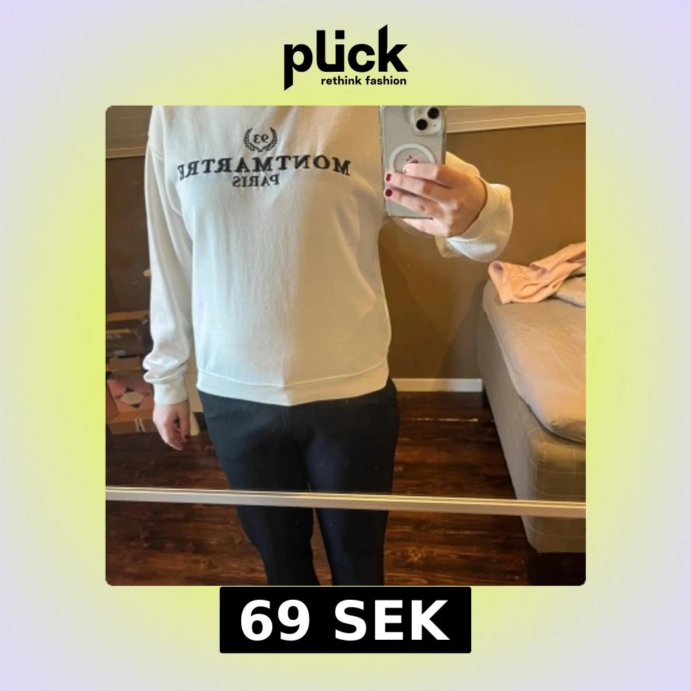 Vit sweatshirt från Montmartre Paris med svart tryck framtill. Tröjan har rund hals, långa ärmar och en avslappnad passform. Perfekt för dig som gillar enkel och stilren streetwear.