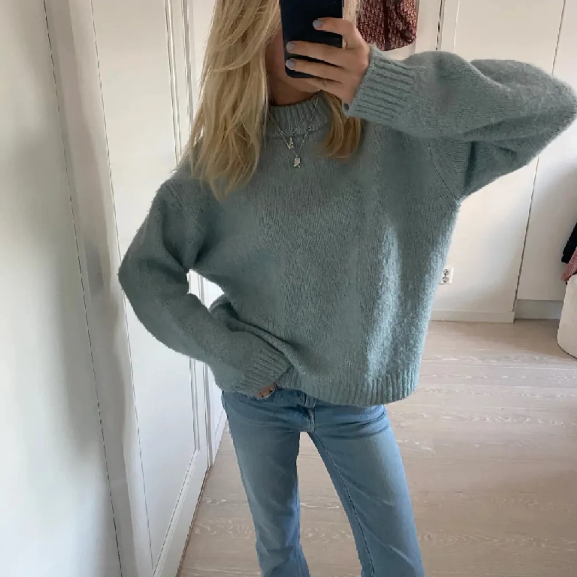 Supermysig stickad tröja, fint skick 🩵 lånade bilder!