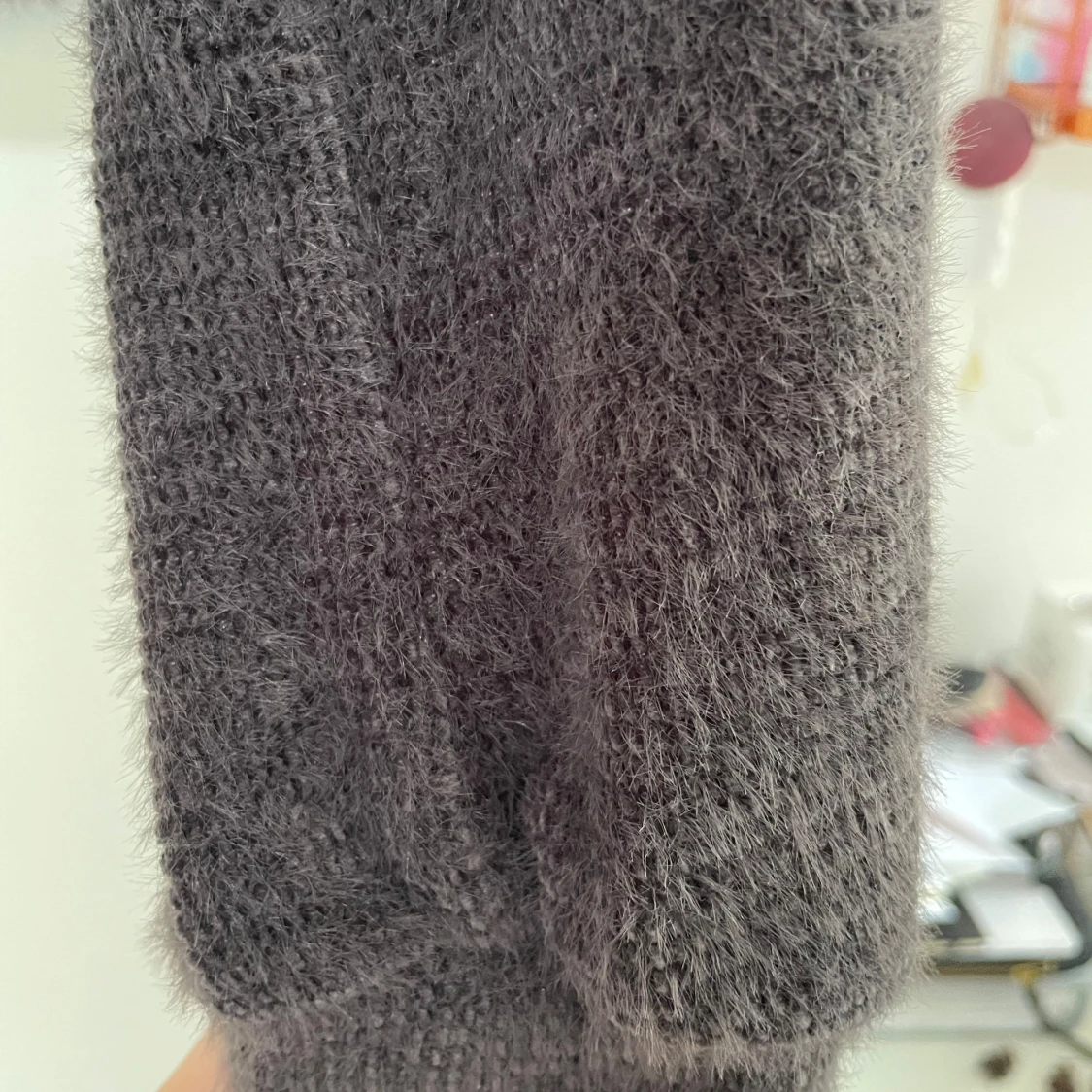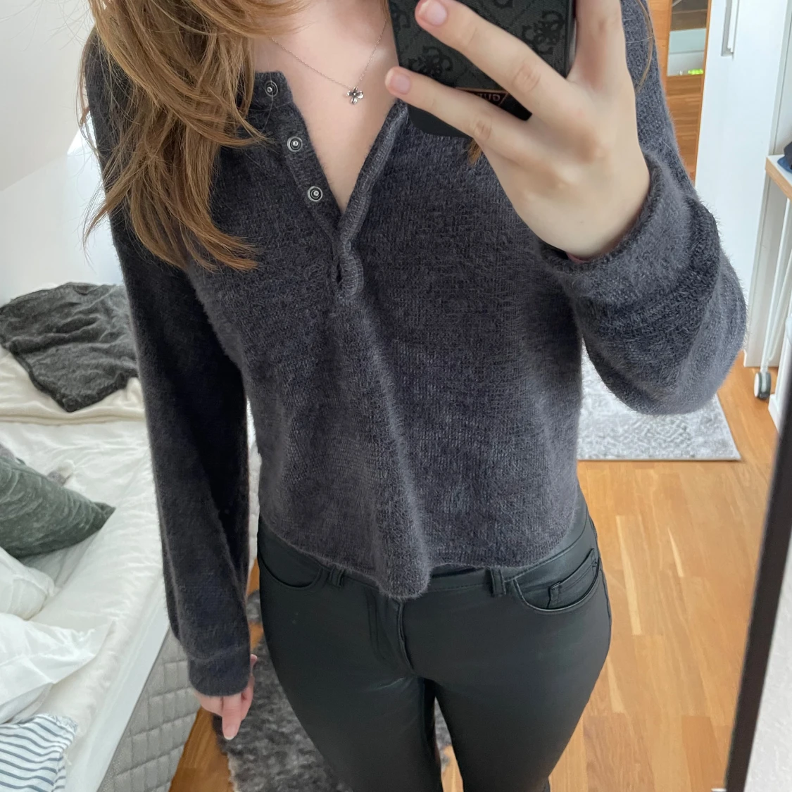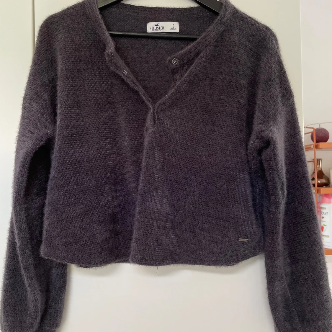 Säljer denna supermysiga mörkgrå stickade tröja från Hollister. Den är perfekt för höst och vinter Den är i nyskick och passar till allt! Materialet är lite ”fluffigt” som man kan se på sista bilden vilket gör den så mjuk💖