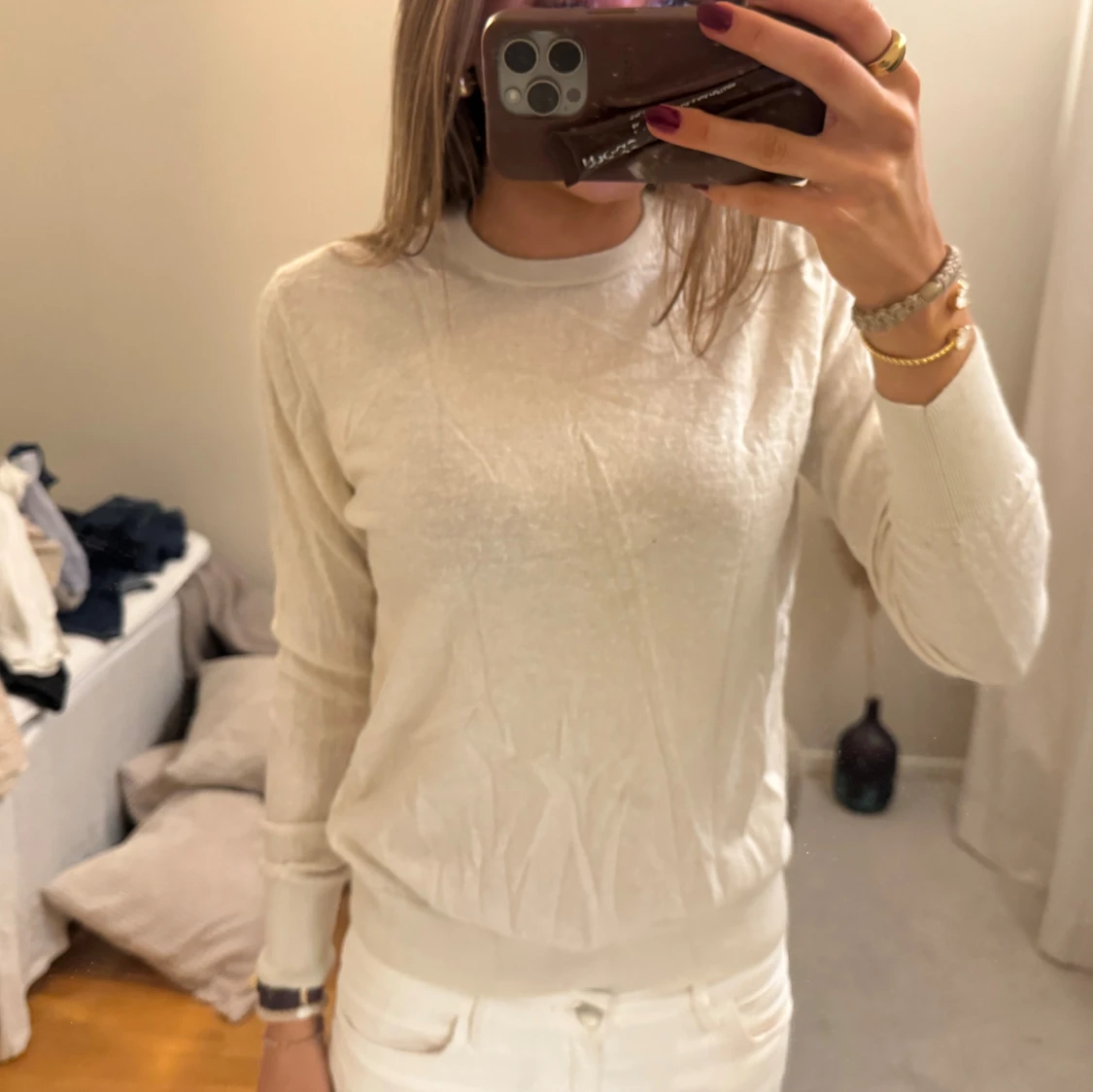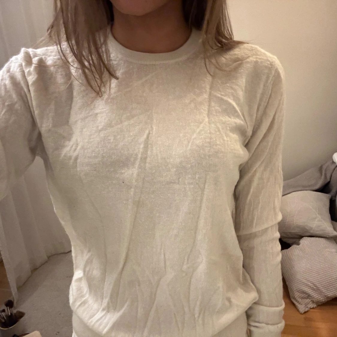 Säljer tröja i merinoull! Har ett litet hål som kan sys igen innan försäljning🩵