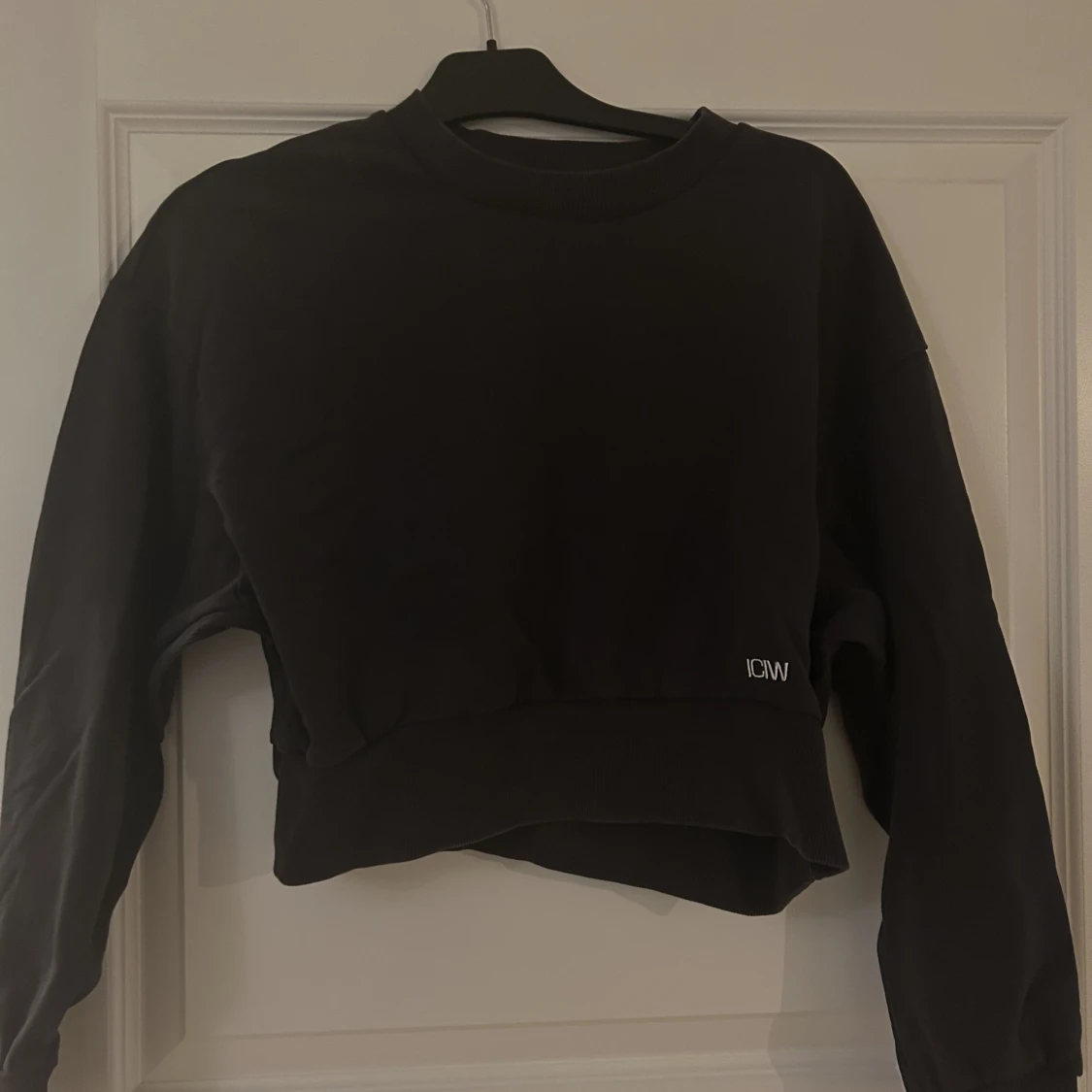 Säljer denna croppade tröja från icaniwill i mörkgrå, stl M
