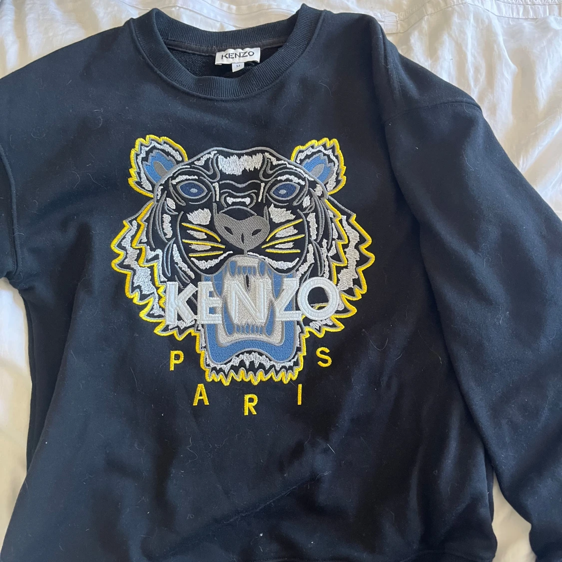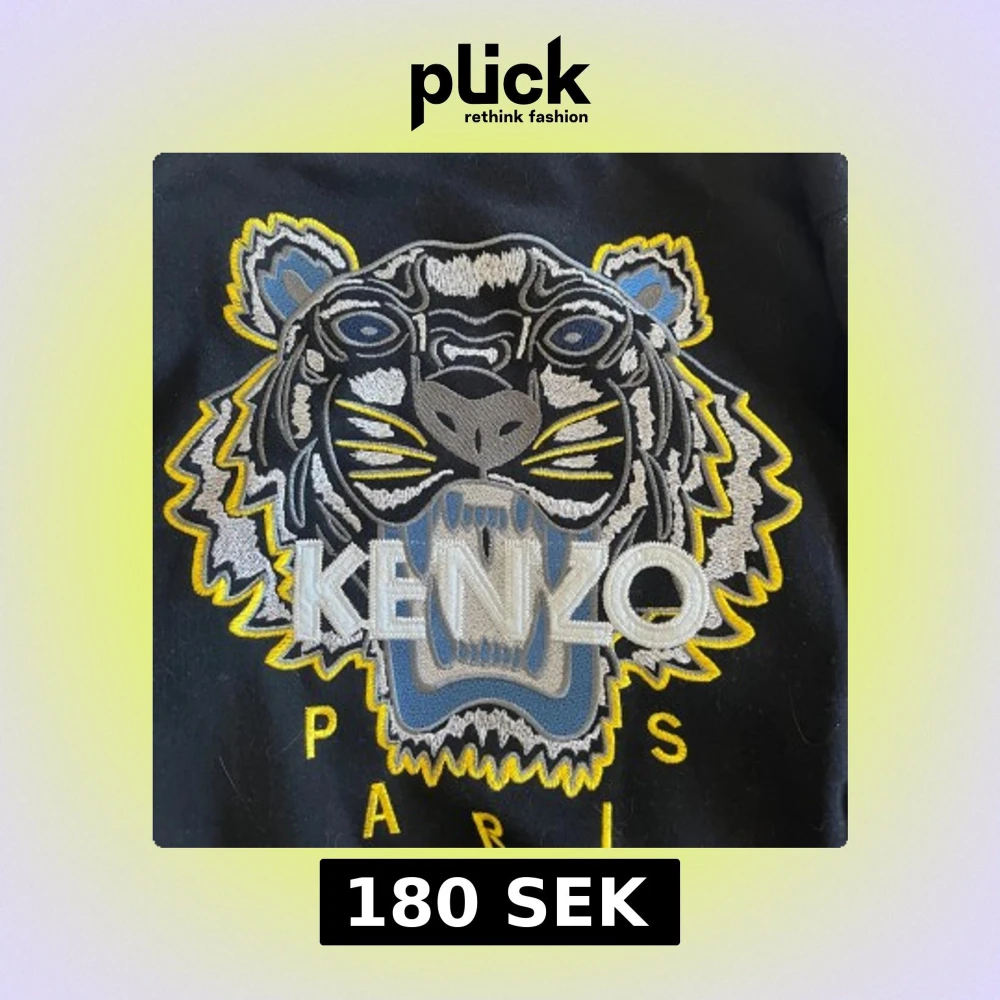 Svart kenzo sweatshirt med ikonisk broderad tiger i grått, blått och gult framtill. Tröjan har rund halsringning och ribbade muddar. Perfekt statement-plagg för dig som vill sticka ut med cool design och snygga detaljer. (Inte äkta!)