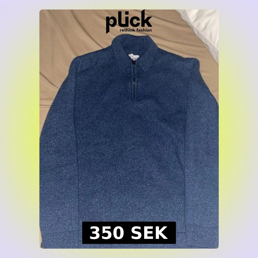 Mysig blå tröja med halvzip och ståkrage. Tröjan har långa ärmar och ribbade muddar vid ärmslut och nederkant. Perfekt för lager på lager och enkel att matcha med jeans eller chinos.