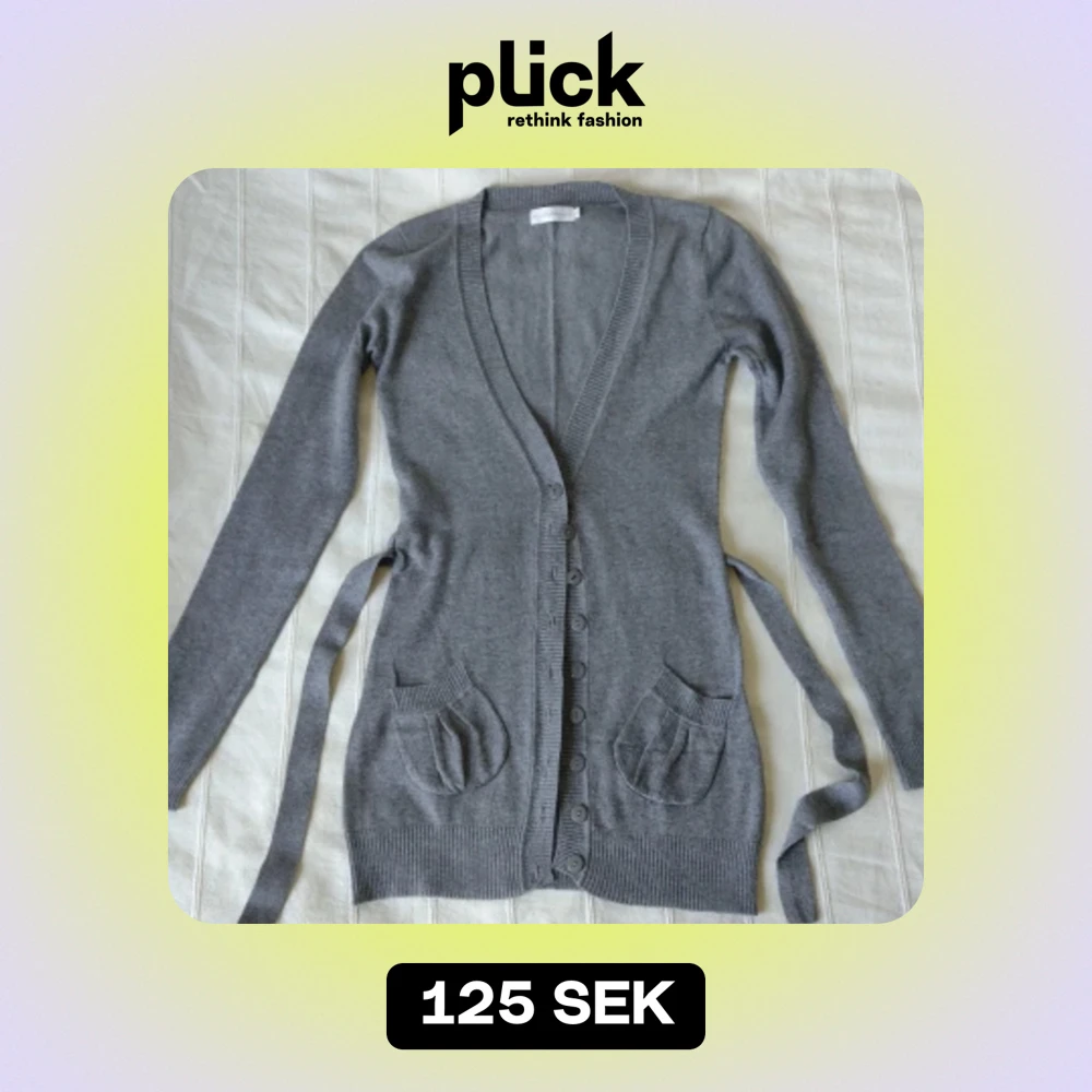 Grå mjuk finstickad kofta/tröja - storlek 8 (XS)