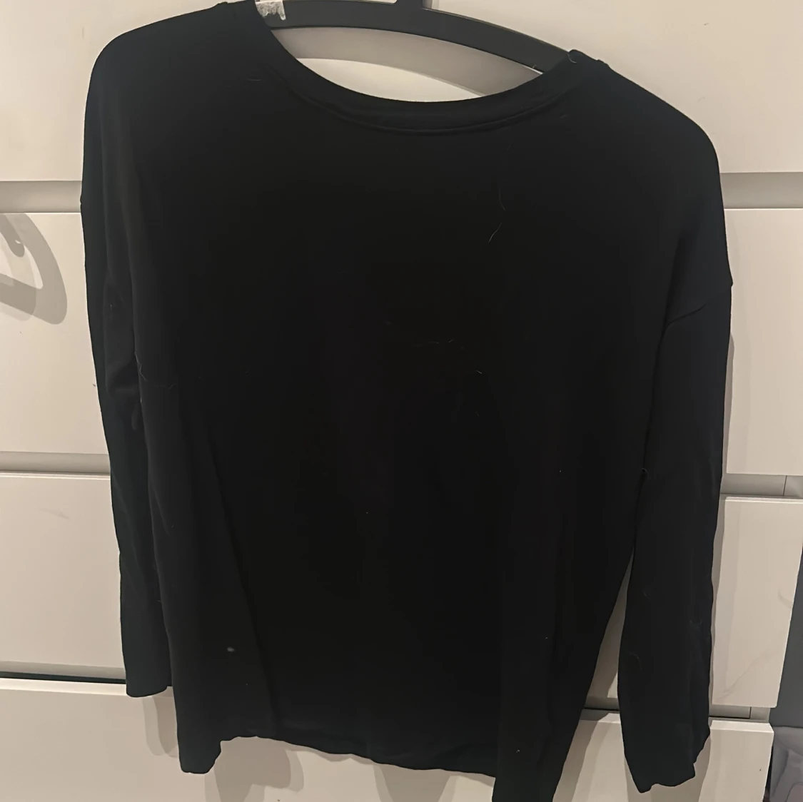 En basic svart långärmad tröja i enkel och stilren design. Perfekt att matcha med jeans eller kjol för en clean look. Tröjan har rund halsringning och är i en mjuk, tunn kvalitet som känns skön mot huden. Tröjan är i XS men den är i modellen mer luftig än tajt på kroppen💕