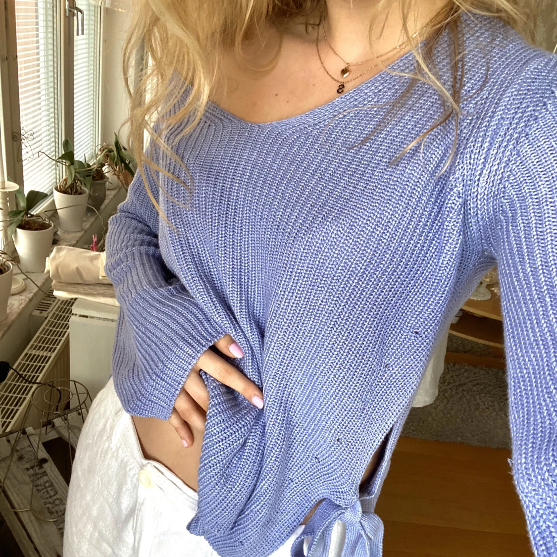 Jättefin ljusblå stickad tröja💕