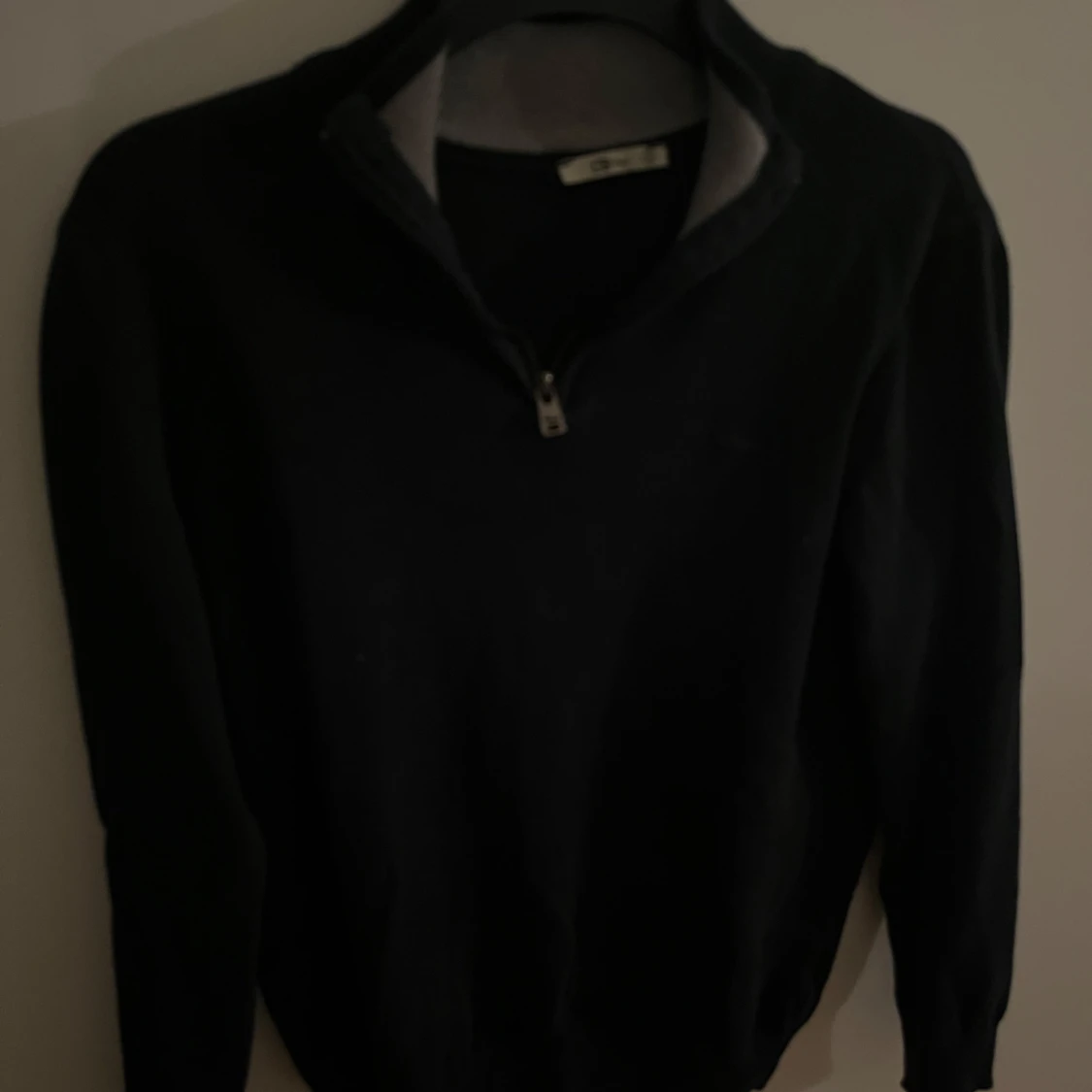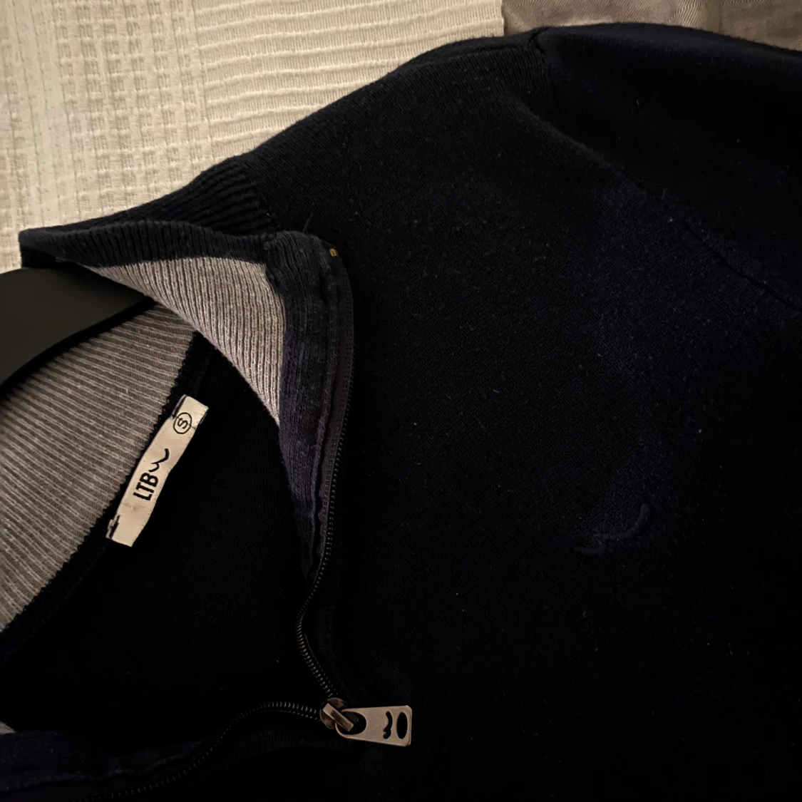 Marin blå stickad tröja med half sip från LTB. Tröjan är i ett bra skicks, noll slitningar eller hål. Tvättas innan den säljs.
