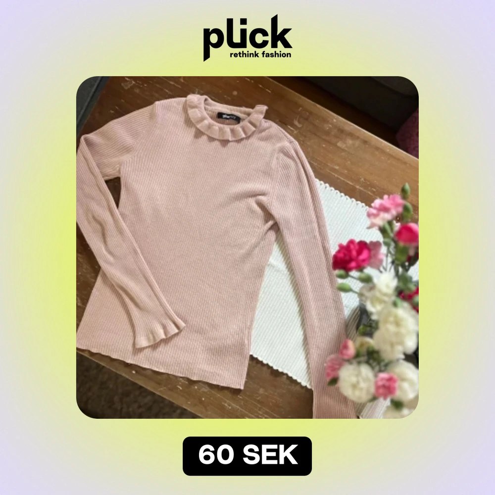 En råsa tröja med mjukt och skönt material den har en slaks volang krage och på armen. Väldigt stretch jag är medium men kan använda den. Kostade originalt 120 kr ca