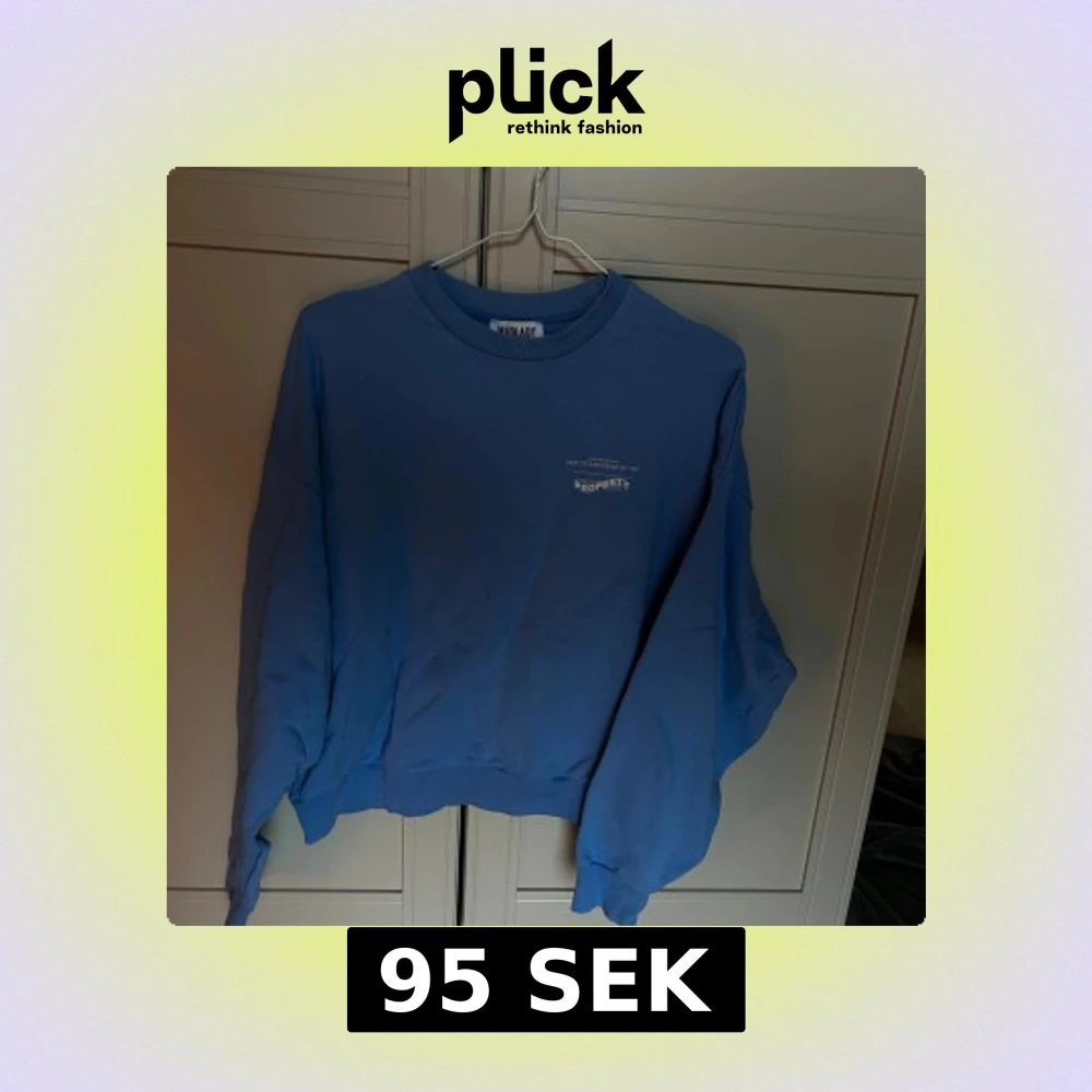 Blå oversized sweatshirt från Madlady med tryck på både bröstet och ryggen. Texten säger "Not stolen from my BF" och "Property" i cool stil. Tröjann har rund hals, långa ärmar och ribbade muddar. 🌟
