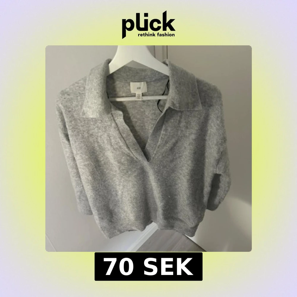Mysig grå stickad trekvartsärmad tröja från H&M med v-ringning och krage. Tröjan har kortare ärmar och en avslappnad passform, perfekt för lager-på-lager. Enkel och stilren design som passar till mycket! 💗