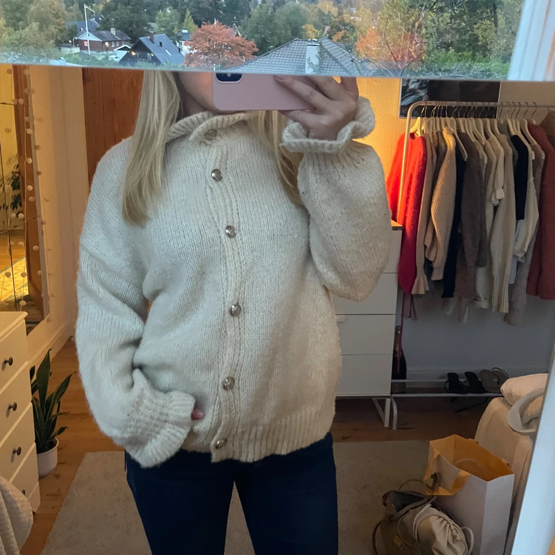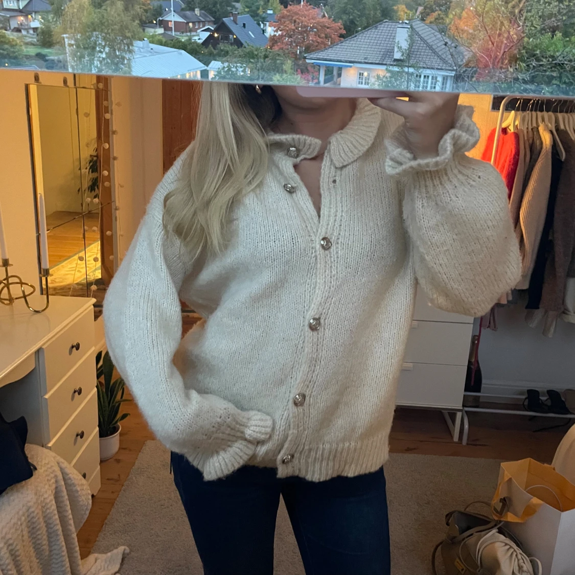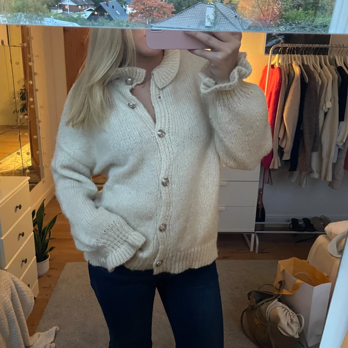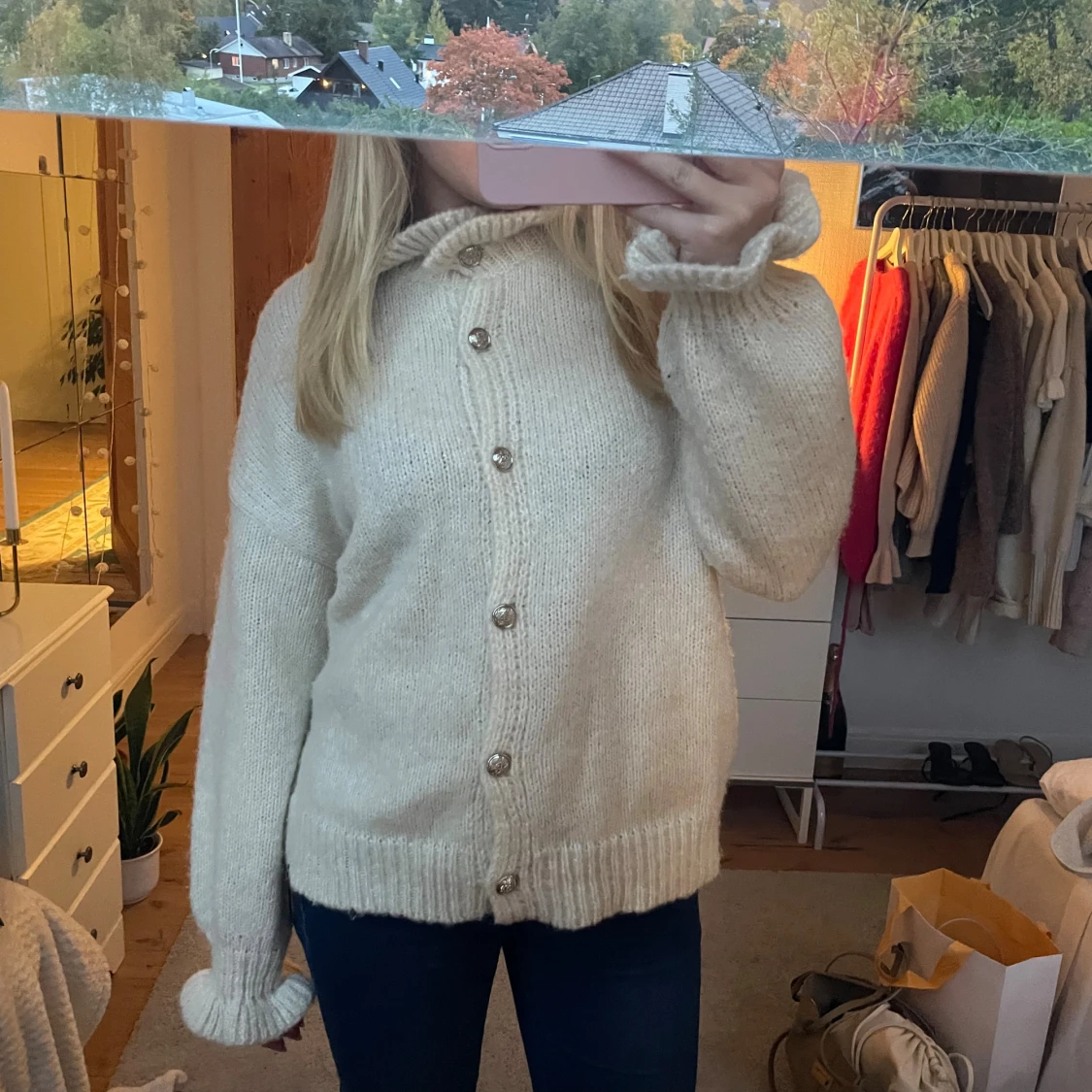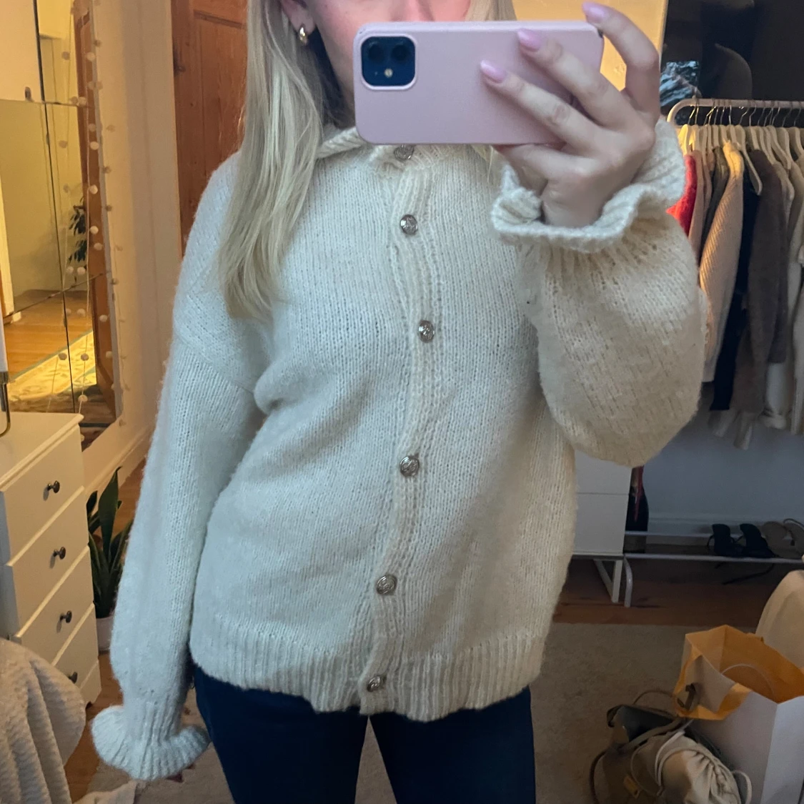 Superfin mjuk kofta med volanger och fina knappar, använd en gång, ej nopprig!