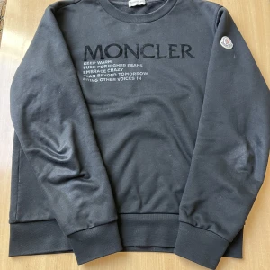 Moncler tröja i storlek M. Utan luva. Storlek M. Jättebra kvalite och matrial. Nyskick. Den har text i framsidan. Logon ligger på armen. NFC skannen fungerar samt Qr koden går att skannas. Har du några frågor får dig jättegärna skriva till mig :)