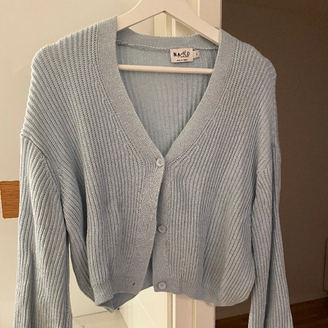 Stickad cardigan i blått från na-kd