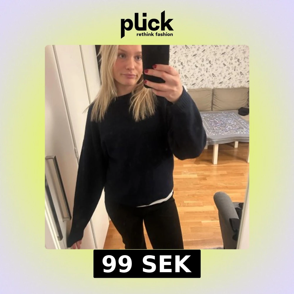 Säljer en mysig mörkblå stickad tröja från Nelly med långa ärmar. Perfekt för kyliga dagar. Tröjan är aldrig använt då det aldrig blivit av.
