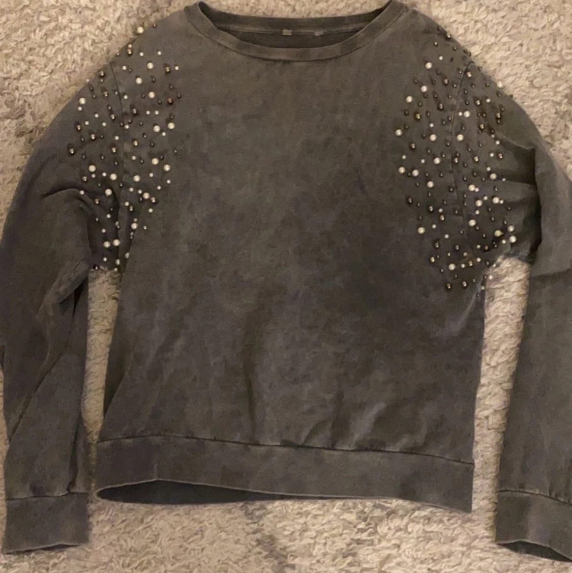Jag säljer denna tröja med pärlor på ärmarna. Säljer också en likadan i svart. Använd några gånger men i väldigt fint skick. Jag vet inte vart den är ifrån och men jag tror lindex. Vet då heller inte storleken men passar som en S på mig och detsamma med den svarta tröjan. Skriv till mig om ni är intresserade eller undrar något.💓
