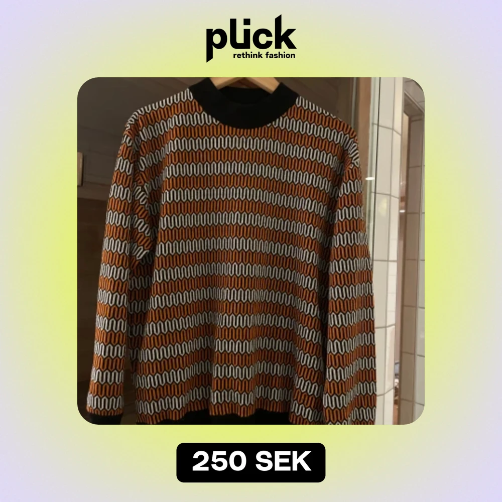 Säljer en unik och stilren tröja från det franska märket Pasaco med ett coolt vågmönster i svart, vitt och orange. Tröjan är i gott skick och har bekväm passform.