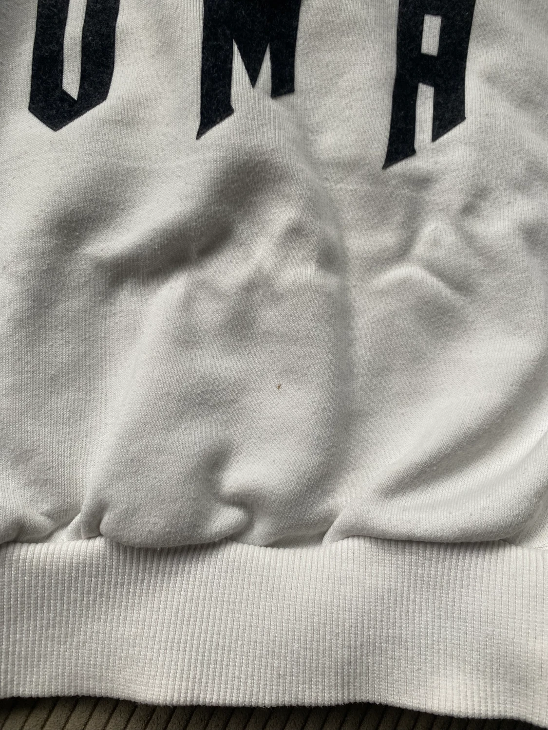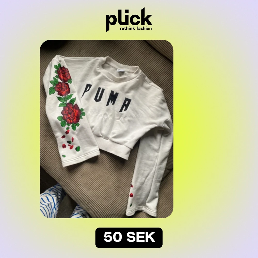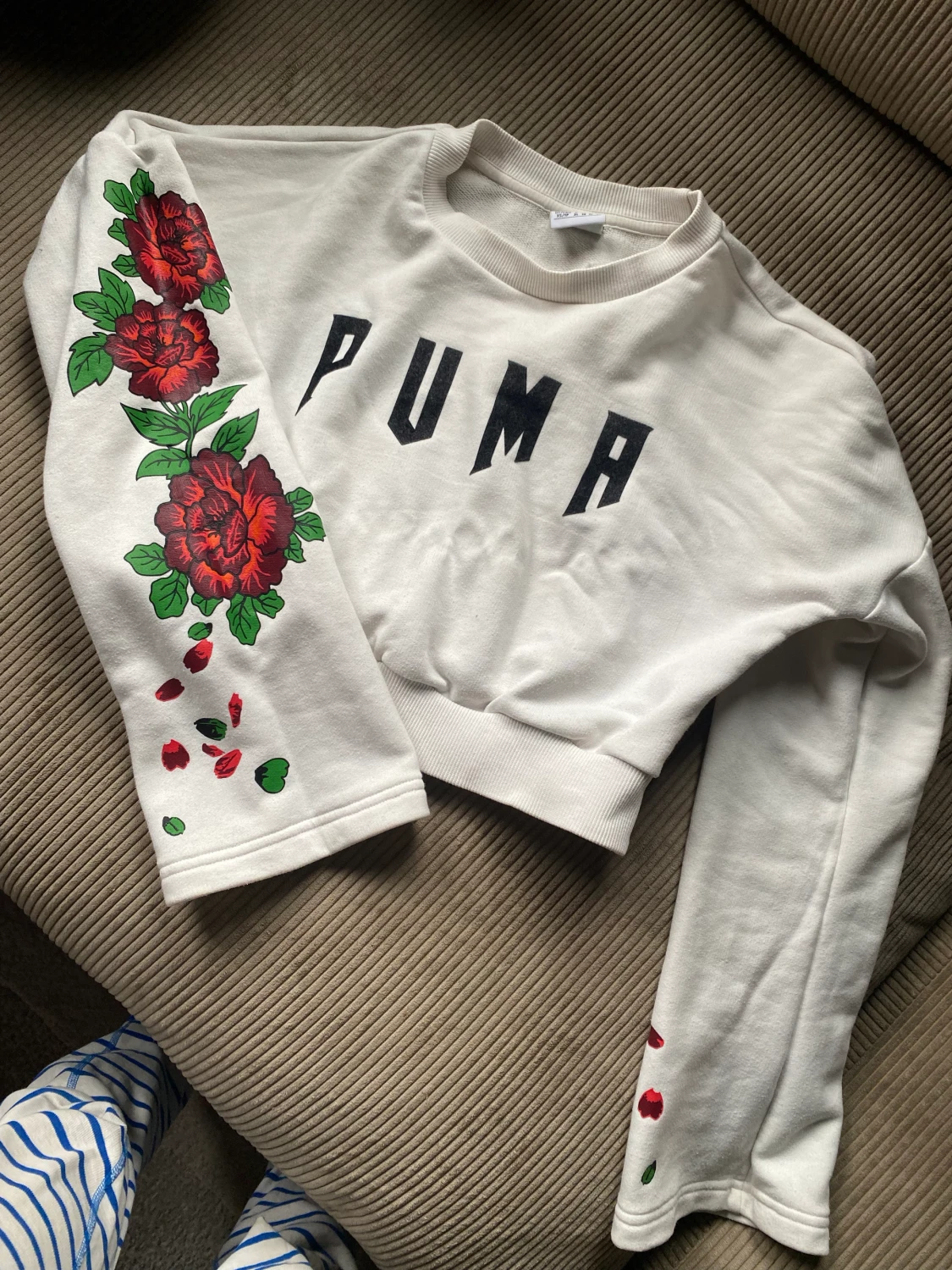 Sweatshirt med utsvängda ärmar från Puma. Har en pytteliten prick på magen och är lite gulnad vid armhålan. Inte behandlad