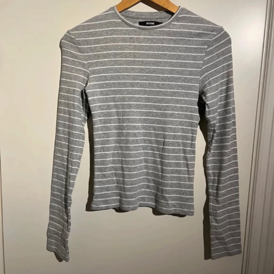 Grå och vit randig långärmad tröja från Bikbok i storlek S, mycket fint skick använd fåtal gånger. Säljs inte längre i butik