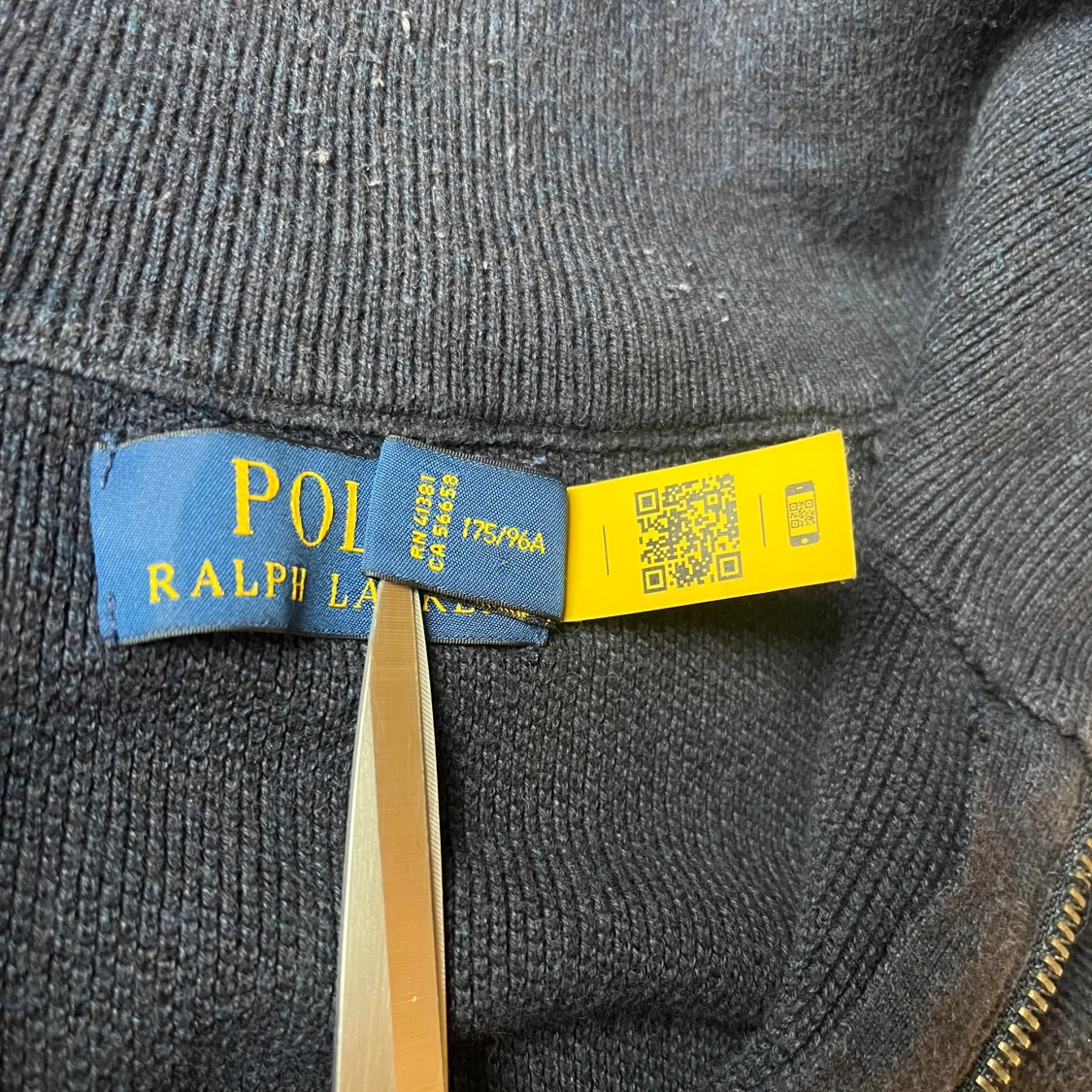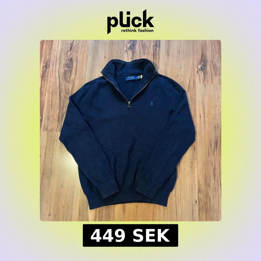 Äkta Navy quarter zip från Ralph lauren 🐎 - längd (65cm), bredd (47cm), ärm (60cm) 8/10 skick, finns ett litet hål på framsidan men annars inga defekter, qr kod finns Hör av er 🫡