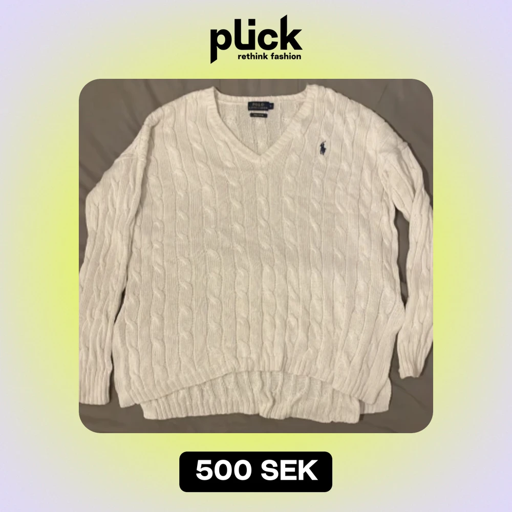 En vit ralph lauren tröja med split på sidorna i storlek S